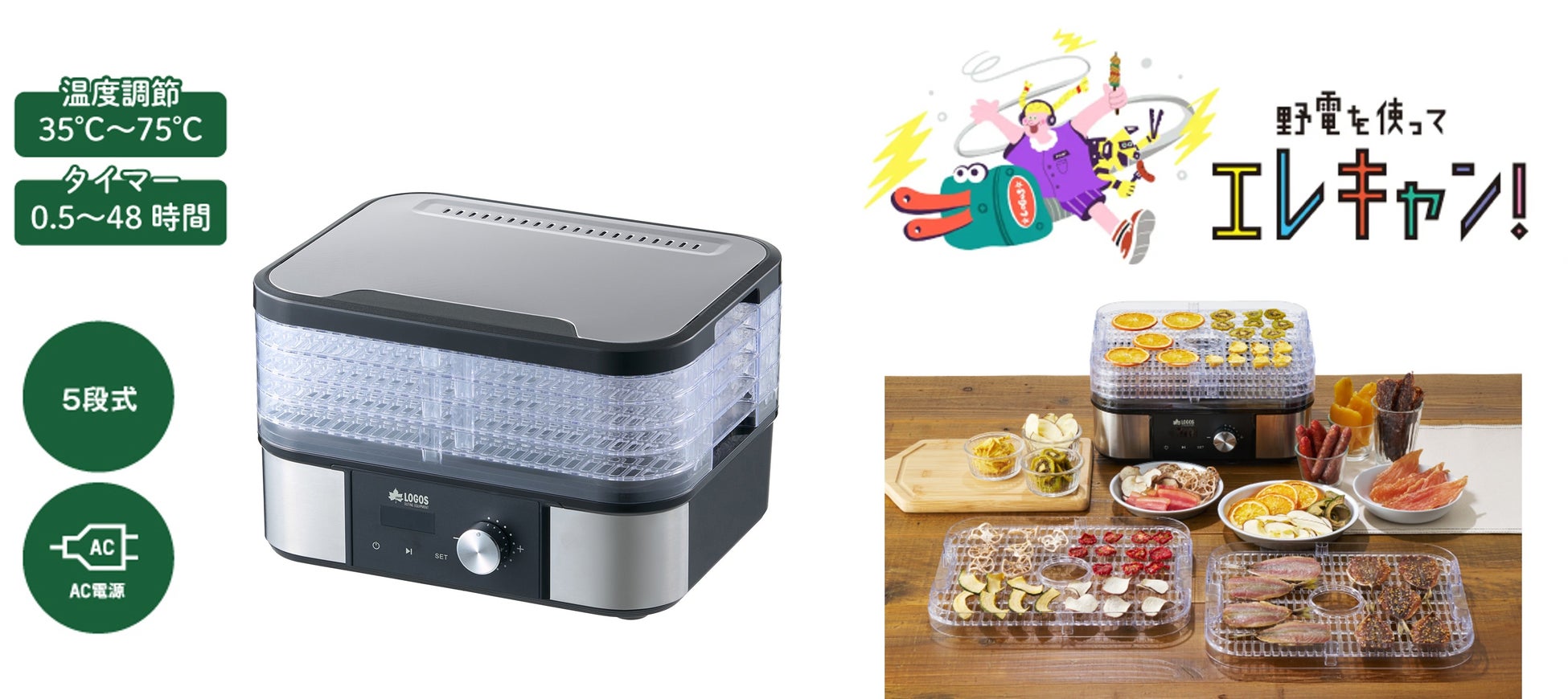 株式会社ロゴスコーポレーション(本社:大阪市住之江区、代表取締役社長:柴田茂樹)が展開するアウトドアブランドの「LOGOS」は、キャンプでも手軽に本格的な干物づくりが楽しめるフードドライヤー「(野電)エレキャン・HIMONOドライヤー」を、2026年2月上旬より新発売いたしました。