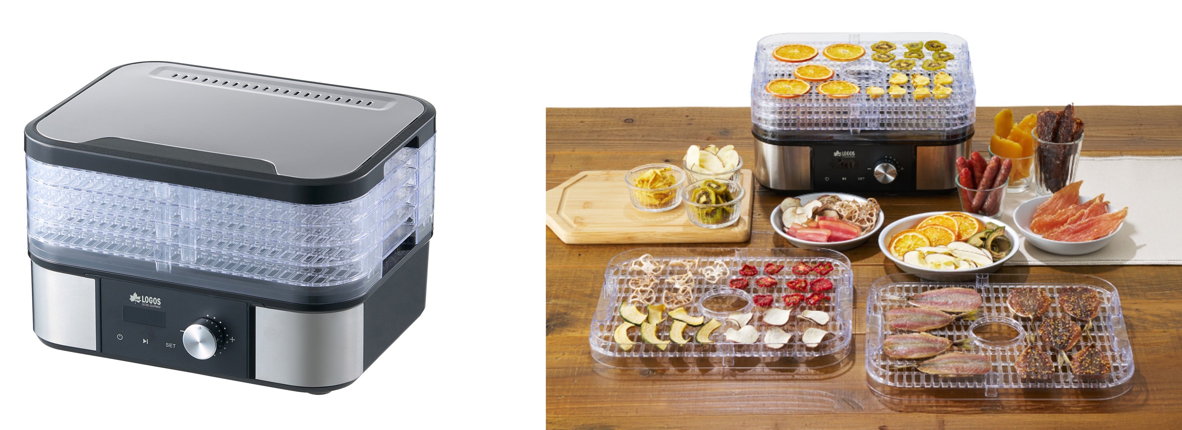 しっかり乾燥させることで食材の長期保存が可能となり、常備食づくりやアウトドアでの食材の軽量化・時短調理に役立つ。キャンプのおつまみから無添加のおやつ、ドライフルーツや乾燥野菜まで幅広く活用でき、キャンプにおける「食」の楽しみ方が広がる。