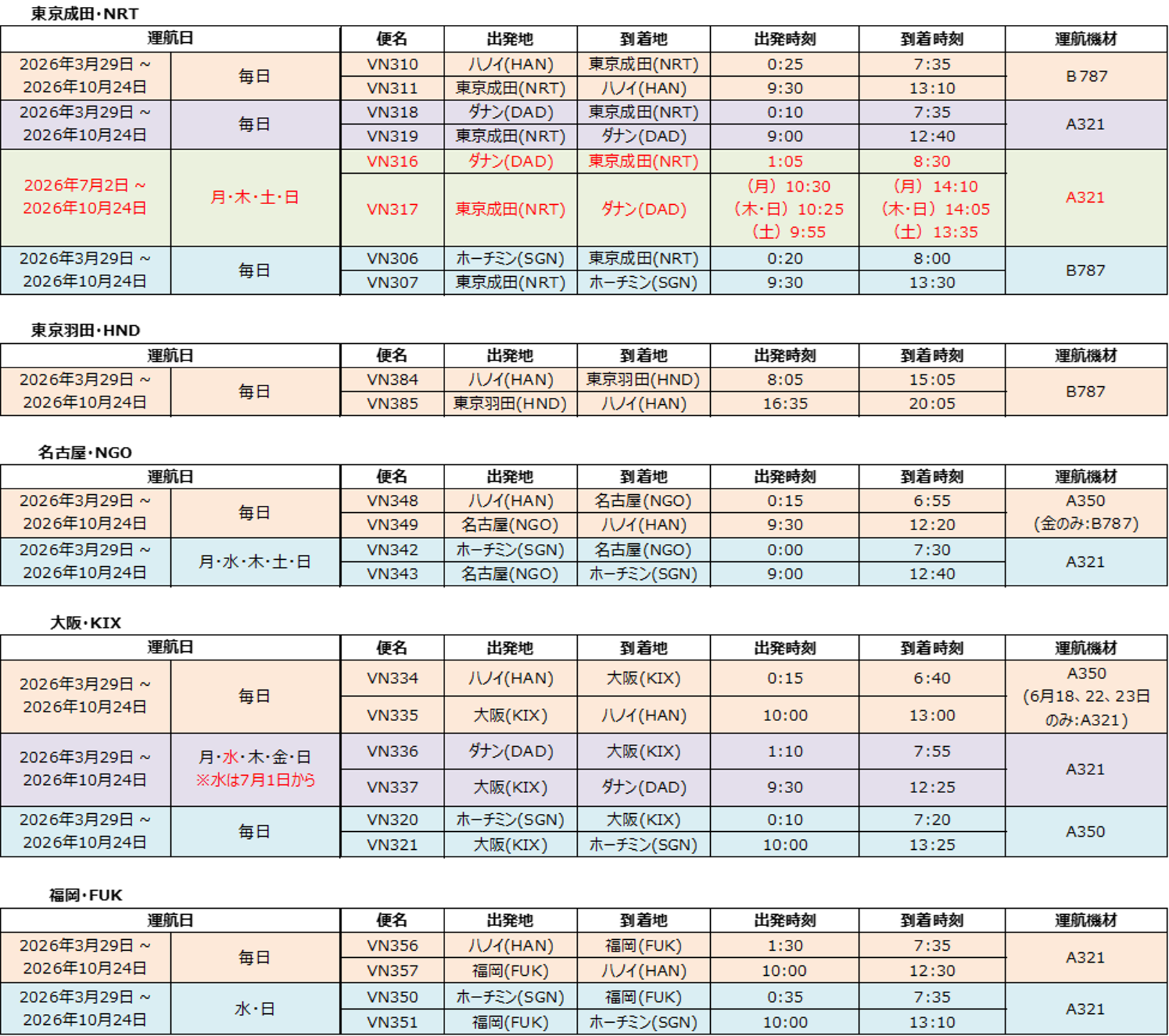 ベトナム航空(日本支社 所在地:東京都千代田区、総支配人:ゴー・シー・アイン)は、2026年3月29日(日)から2026年10月24日(土)までの夏季運航スケジュールを発表しました。