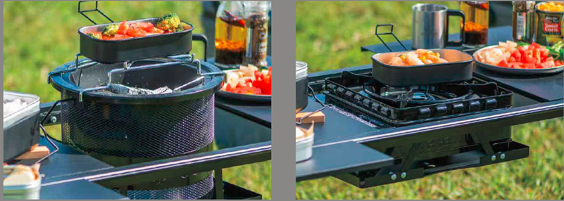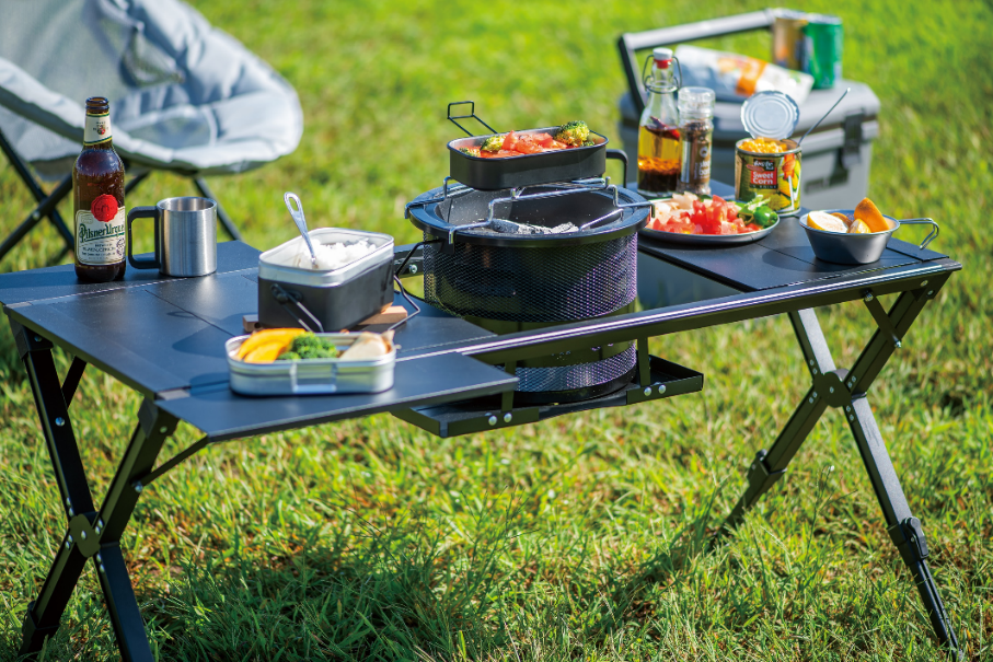 昨年発売からわずか3か月で累計販売個数1万個を突破した「真空パネルクーラーボックス」の新色のグレーや、内側にブラッククールコーティングをし、遮熱・遮光効果抜群の「ブラッククールプッシュアップタープ 横幕付き」は、アウトドア、レジャーでの暑さ対策に大活躍するアイテムです。「アウトドアシステムテーブル」は、お好みの位置に七輪やカセットコンロを設置が出来るテーブルで、天板を拡張できたり、高さ調整ができたりと、多機能でシーンにあわせて様々な使い方が可能です。
