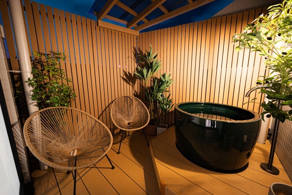 チラーを備えた水風呂は、ランニング後のアイシングにも最適で、身体をいたわりながら、質の高いリカバリーを体感いただけます。男女ともに外気浴スペースも完備。また、洗面スペースには、女性用洗面台に「ReFa」のドライヤーおよびストレートアイロン、男性用洗面台には「ReFa」のドライヤーを完備。入浴・サウナ後の身支度まで快適にお過ごしいただける環境を整えています。