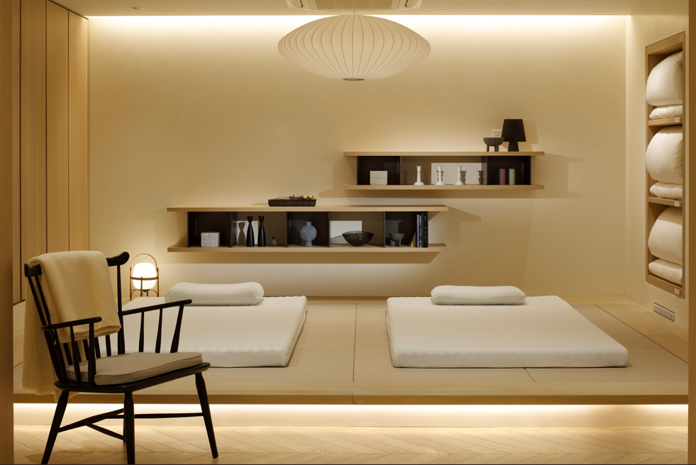 和式のお部屋にはもちろん、ホテルを中心としたベッドスタイルまでどのような空間にも対応できるのもムアツの魅力。施設全体で「くつろいでお過ごしいただける休息空間」をご提供いただけます。