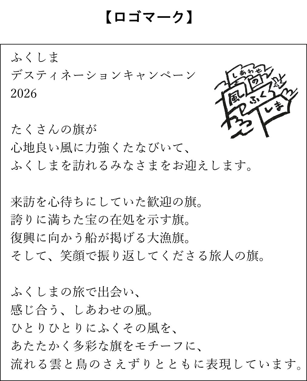 福島県デスティネーションキャンペーン実行委員会とJRグループは、2026年4月~6月に春の福島県全域を舞台に「ふくしまデスティネーションキャンペーン(以下、ふくしまDC)」を開催します。キャッチコピーは「しあわせの風ふくしま」。風の恵、風の香、風の詩、風の路、4つのテーマを通じて、福島ならではの魅力を感じる特別な体験をご用意し、福島のしあわせとおもてなしで、皆さまをお出迎えいたします。
