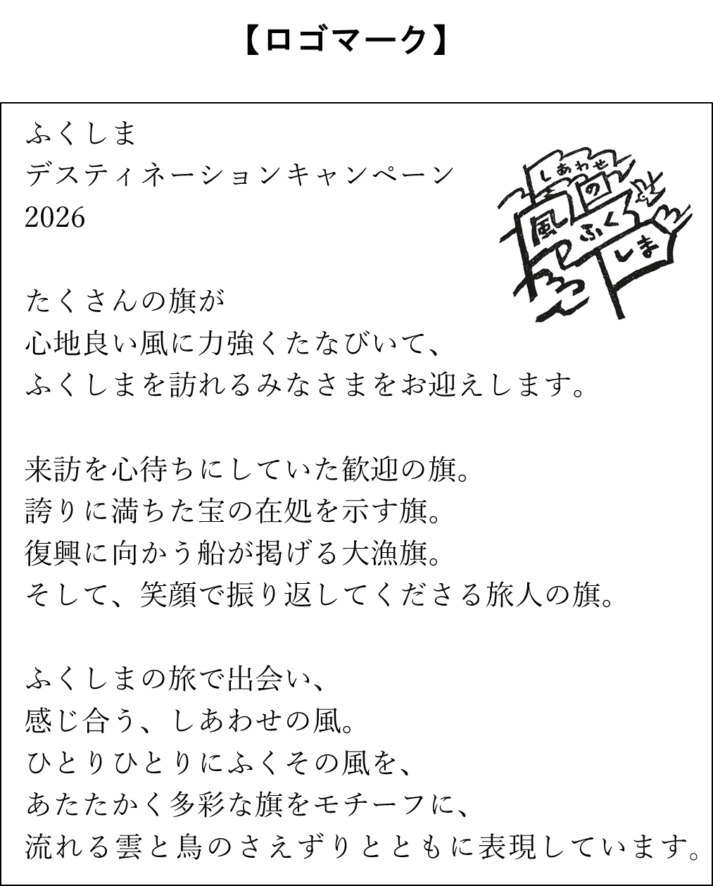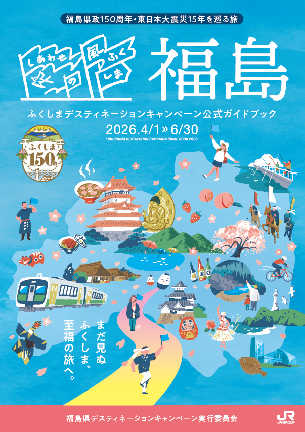 福島県デスティネーションキャンペーン実行委員会とJRグループは、2026年4月~6月に春の福島県全域を舞台に「ふくしまデスティネーションキャンペーン(以下、ふくしまDC)」を開催します。キャッチコピーは「しあわせの風ふくしま」。風の恵、風の香、風の詩、風の路、4つのテーマを通じて、福島ならではの魅力を感じる特別な体験をご用意し、福島のしあわせとおもてなしで、皆さまをお出迎えいたします。