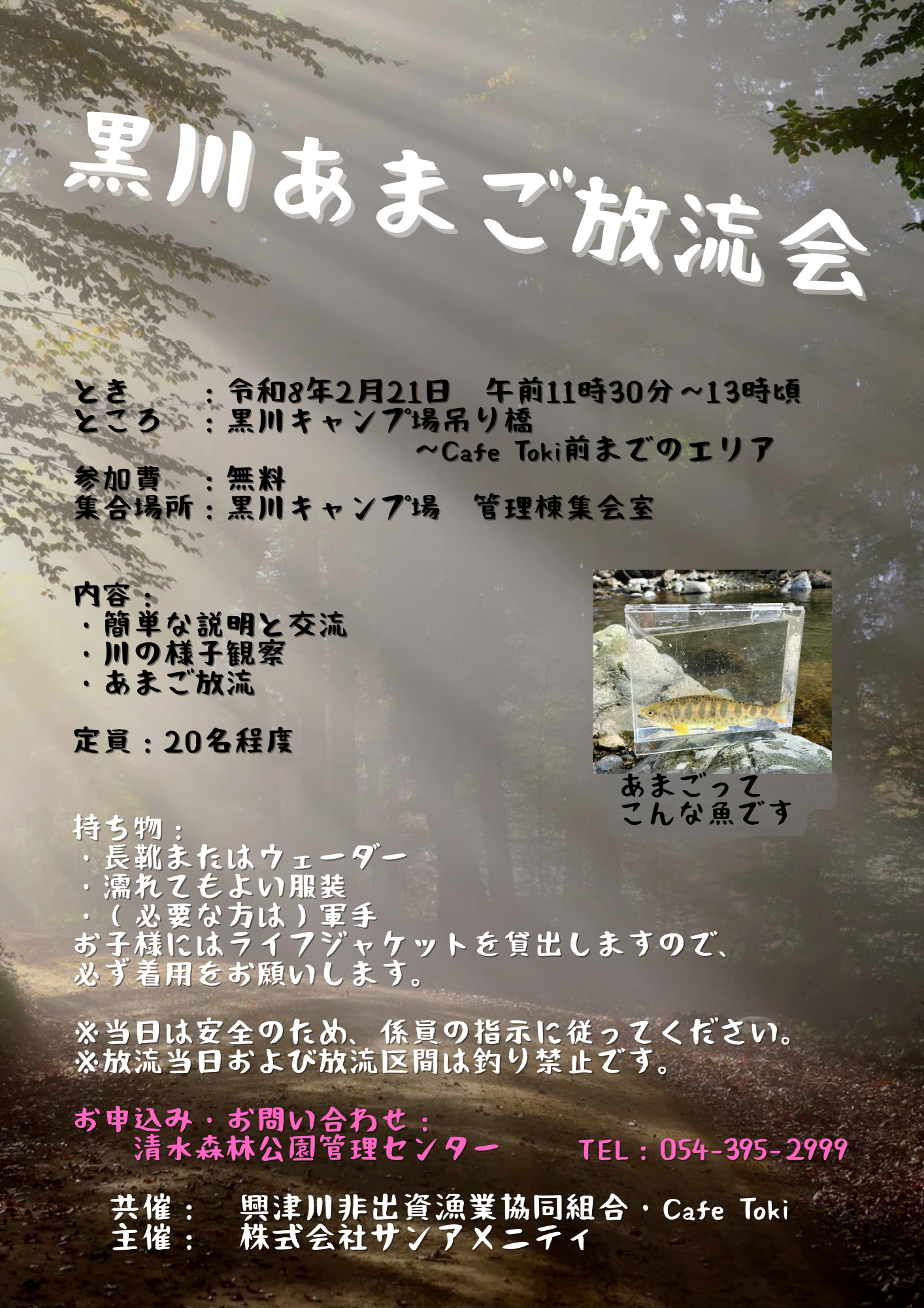 【静岡県静岡市清水区】清水森林公園黒川キャンプ場 あまご放流会開催します。