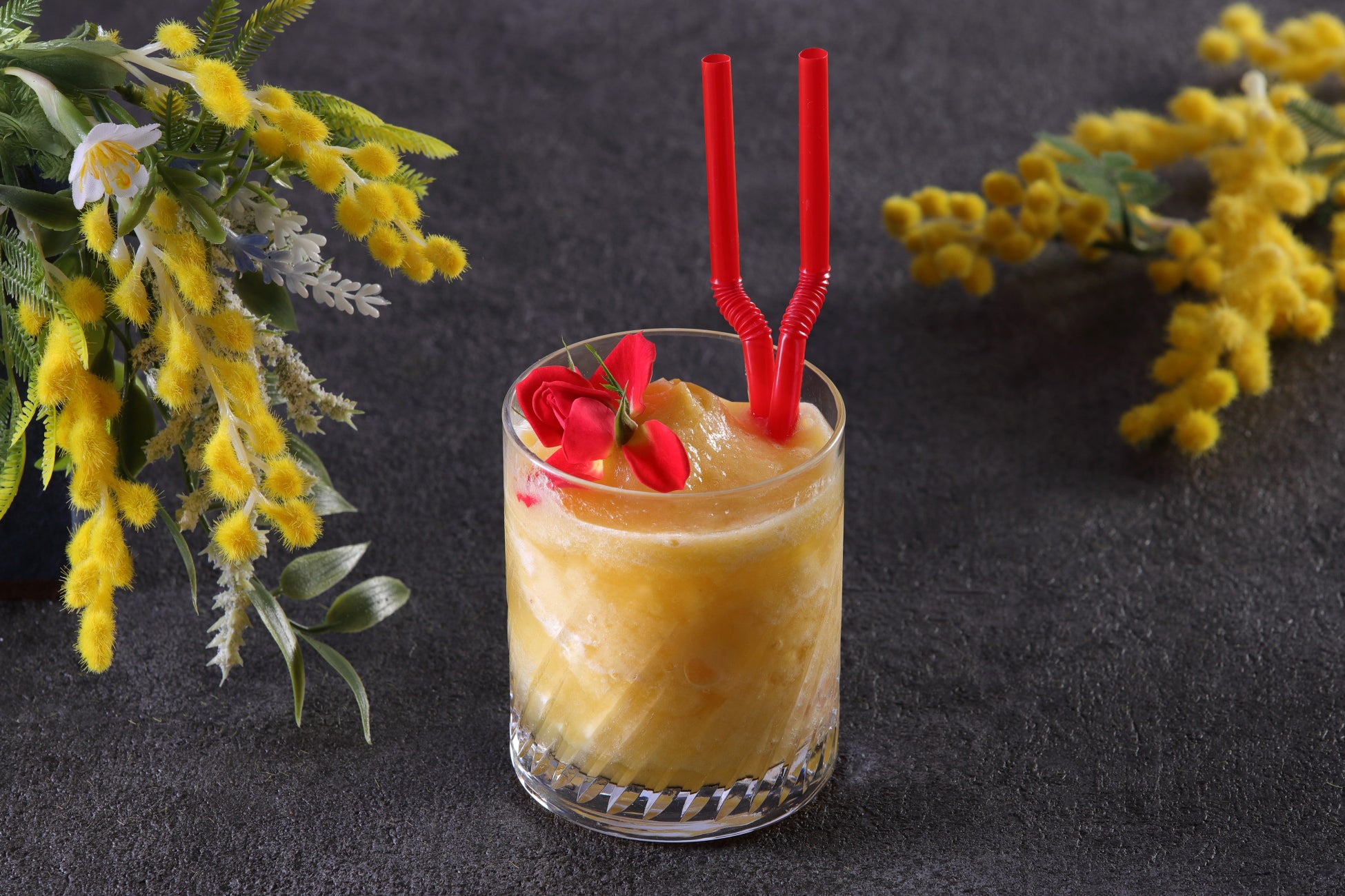 ラムをベースにほろ苦い甘さの金柑リキュールと華やかな香味のエルダーフラワーリキュール、爽やかな酸味のパイナップルジュースなどを合わせたフローズンカクテルです。