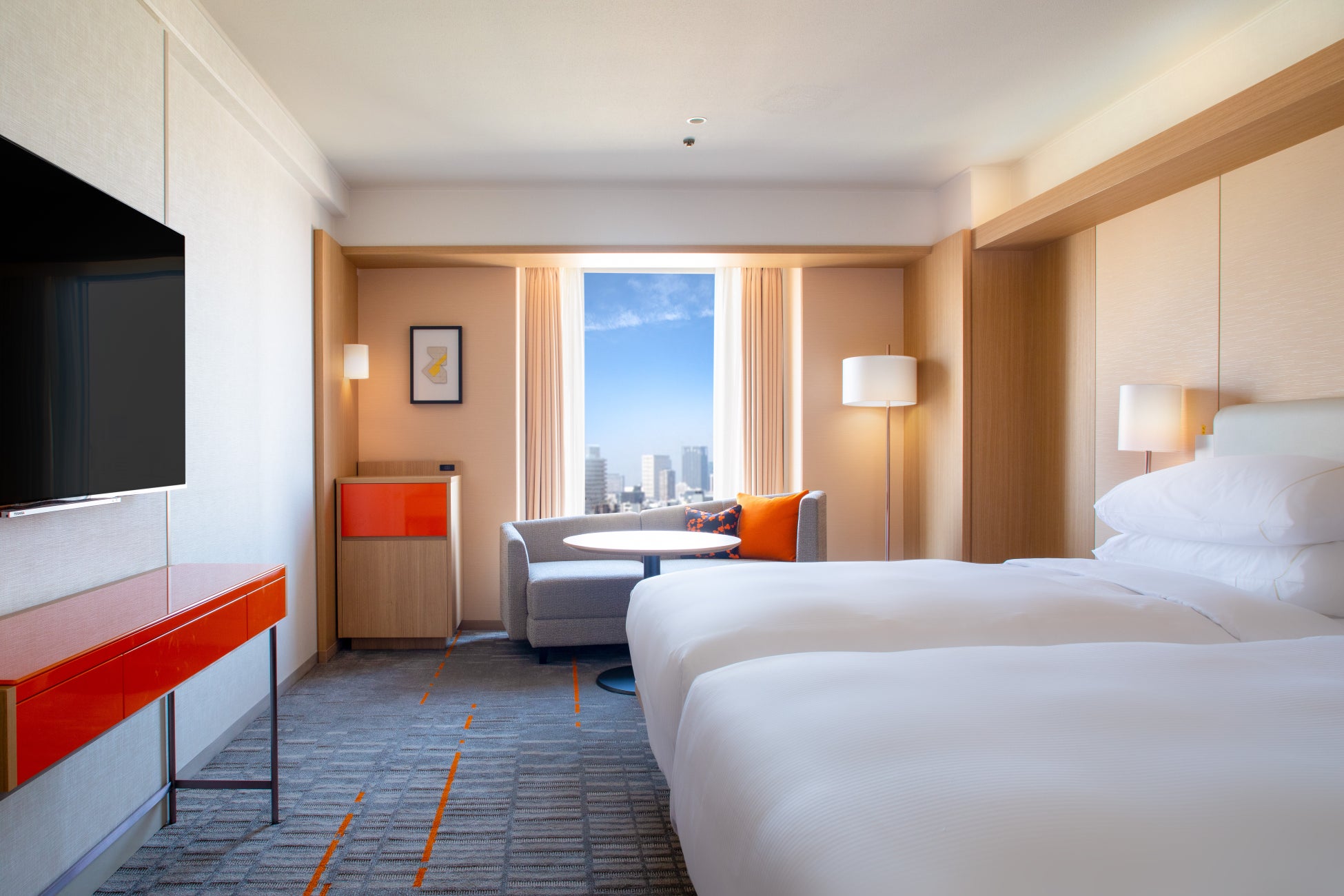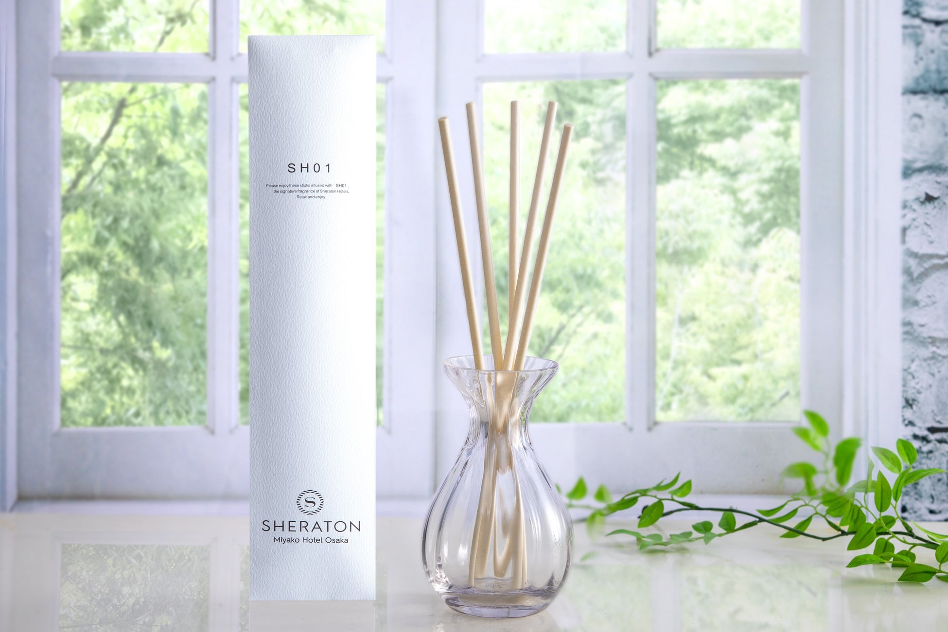シェラトンホテルのロビーに漂う香り「SH01」をご自宅でも楽しめる、ディフューザースティック付きプラン。お部屋は明るいオレンジカラーを随所にあしらった、プレミアムフロアのデラックスツインをご用意します。