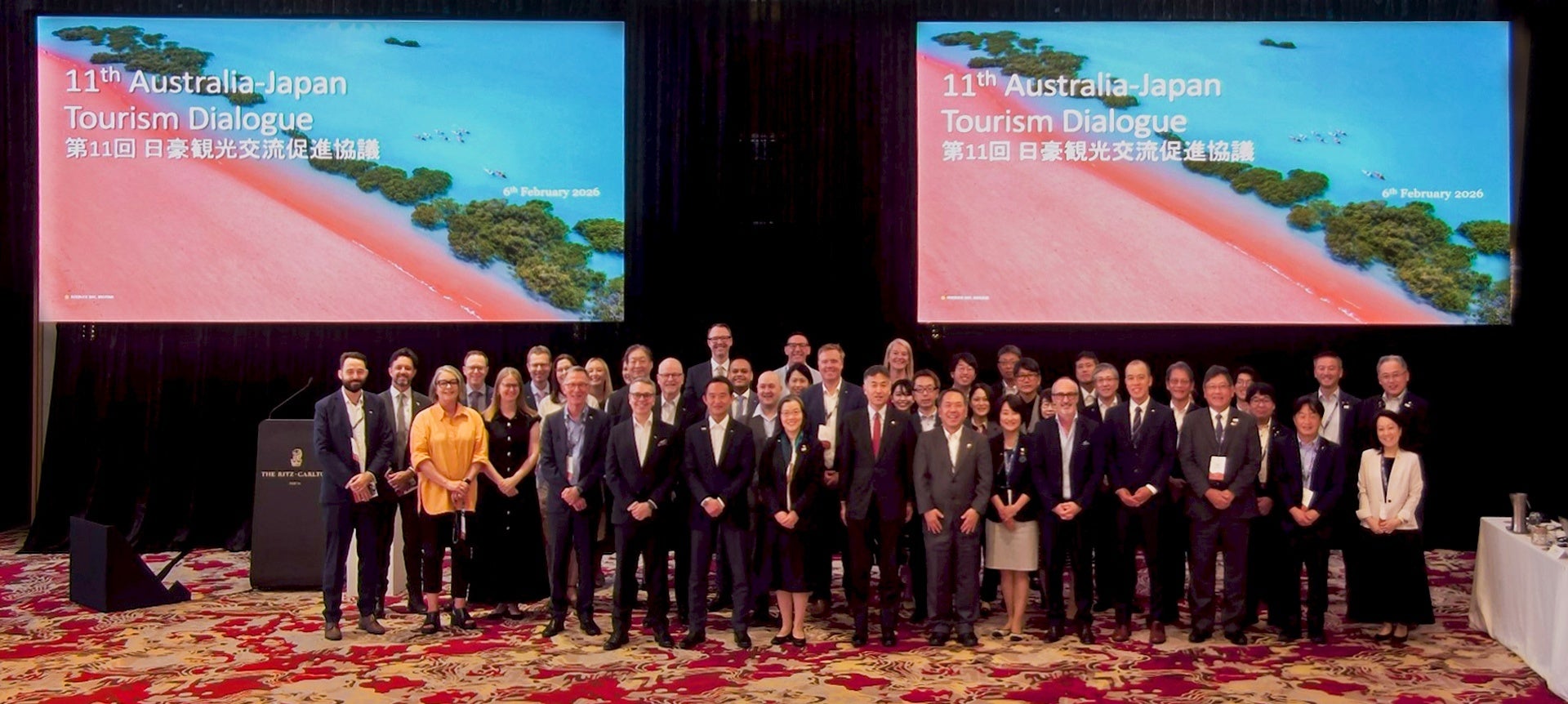 オーストラリア政府観光局(TA)は、西オーストラリア州政府観光局、オーストラリア外務貿易省(DFAT)、オーストラリア貿易投資促進庁(オーストレード)、およびオーストラリア内務省による協力のもと、2026年2月6日(金)、西オーストラリア州パース/ボールーにて「第11回 日豪観光交流促進協議(Australia-Japan Tourism Dialogue)」を開催しました。本年は、1976年に日豪友好協力基本条約が署名されてから50周年の節目にあたり、両国の二国間関係において極めて重要な意義を持つ開催となりました。