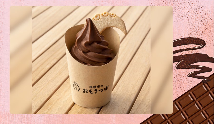 たこ足の形をしたオリジナルミルククッキーがトッピングされた、チョコレートソフトクリームです。