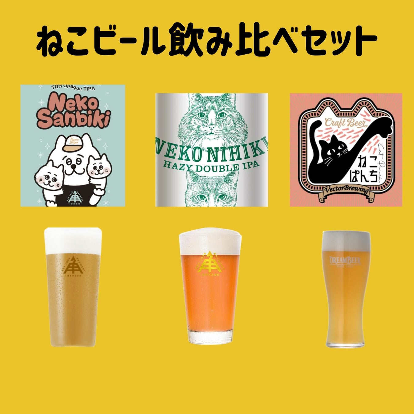 にごりある外観でコクと甘味あるジューシーな飲み心地の「ねこにひき」、よりホップを増やし、トロピカルな香りの「ねこさんびき」、ほのかな酸味とさっぱりとした飲み口、柑橘を思わせる爽やかなホップの香りが特徴の「ねこパンチ」の3種飲み比べができるセット。