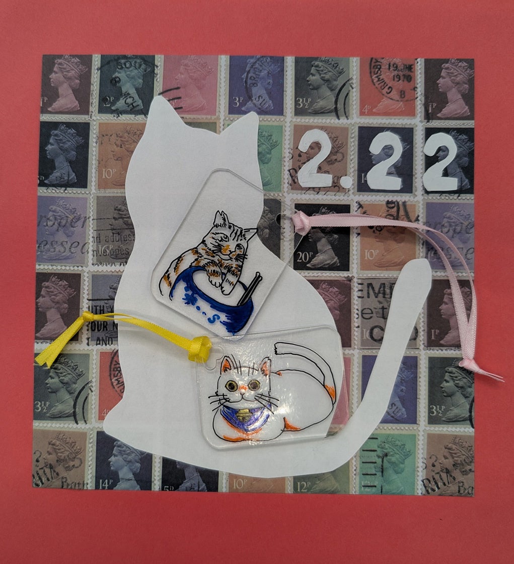 向島郵便局の臨時出張所による猫の日記念のオリジナル記念小型印の押印サービス。