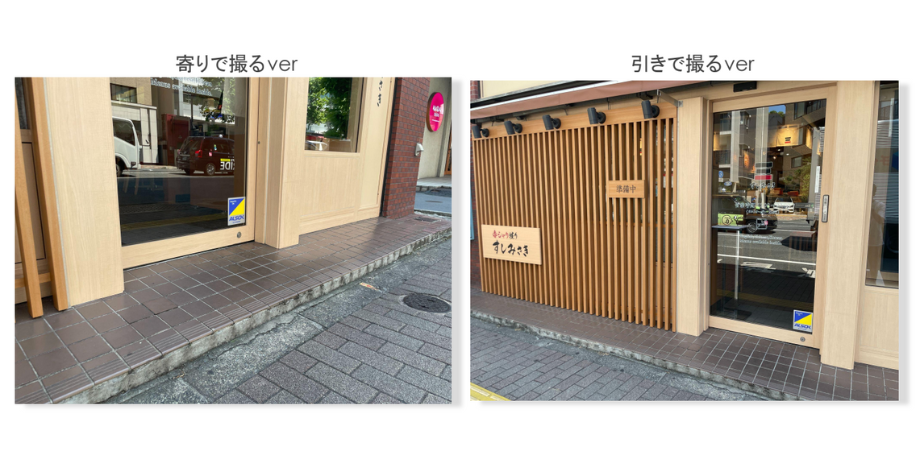 段差の有無、高さ、お店の広さなど引きと寄りの写真をWEB上に公開するだけでも文面だけでは伝わらない利用イメージが十分に伝わります。