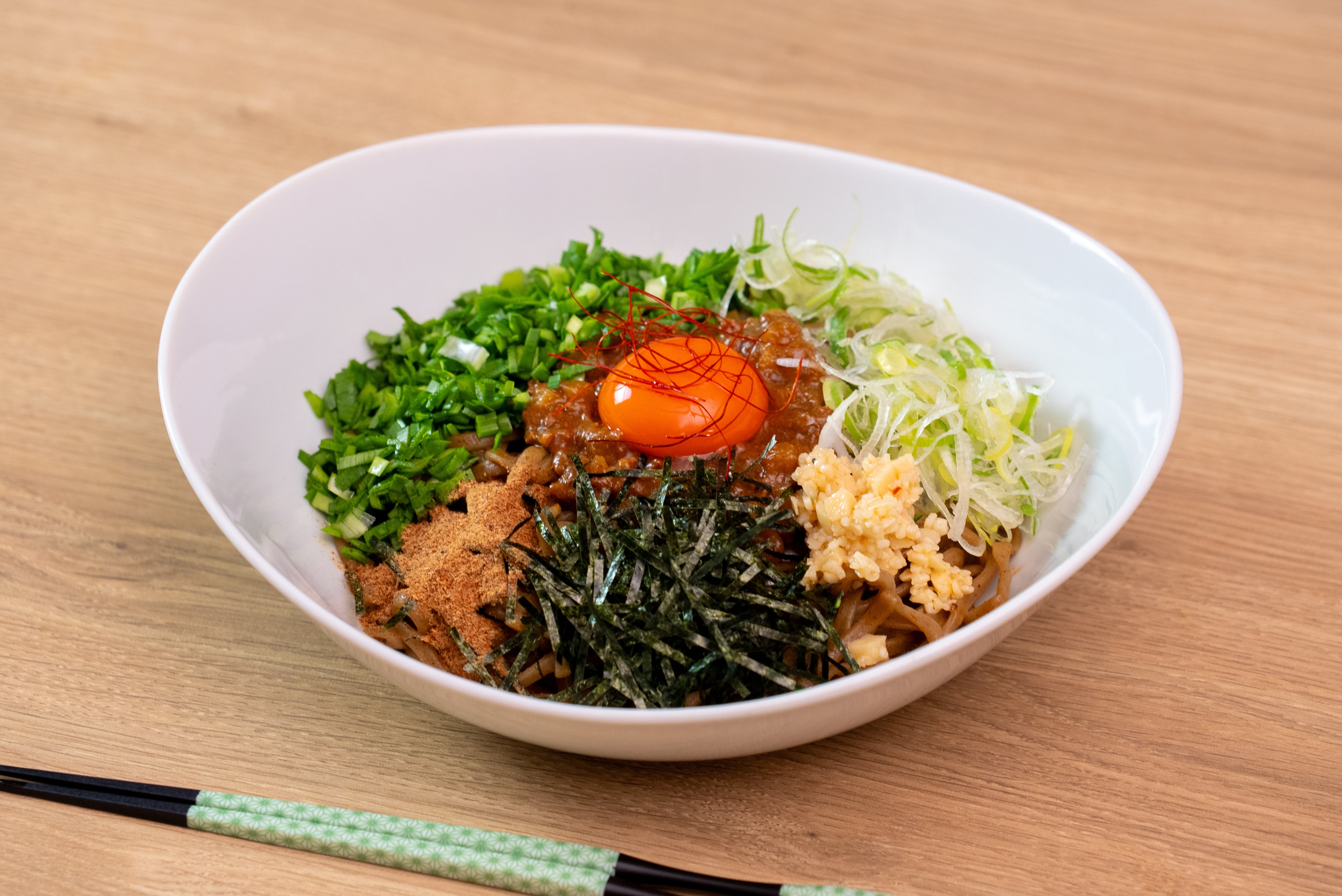 ・まぜそば:ニンニクのパンチと魚粉の旨み、にら・ネギの香味野菜に肉味噌のコクを重ねた火照った身体に染み渡る一杯です。