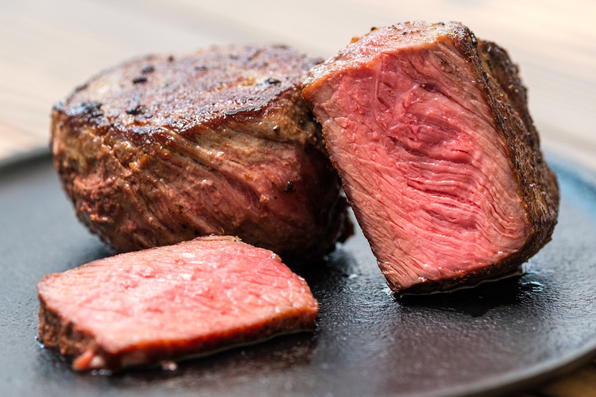 ヒレ肉の中心部分にあたる最も柔らかい部位で、1頭からわずかしか取れない超希少部位。脂は少なめながら極めてジューシーで、口の中で溶けるような上品な食感と深い旨味が楽しめます。