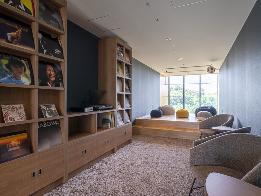「あわいの間」には本やレコード、ボードゲームといったテーマごとの「過ごし」の空間をご用意しています。宿泊者が自由に使える空間です。気になる本を探してみるもよし、音楽に聴き入るもよし、出会った人とゲームで打ち解けるもよしの空間。ご宿泊のお部屋から飛び出して探検してみませんか。
