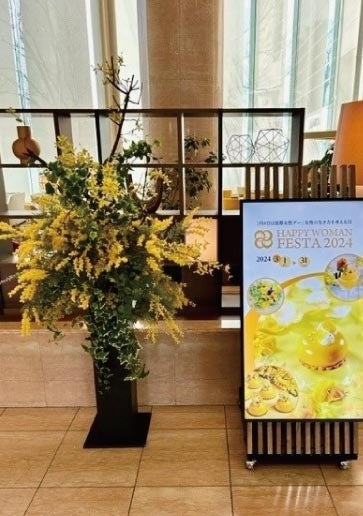 めざし、今年10周年を迎えるHAPPY WOMAN®の活動に賛同し、ロビーや店舗前にてシンボルカラーのハッピーイエロー(幸せの黄色)の彩りでお迎えします。