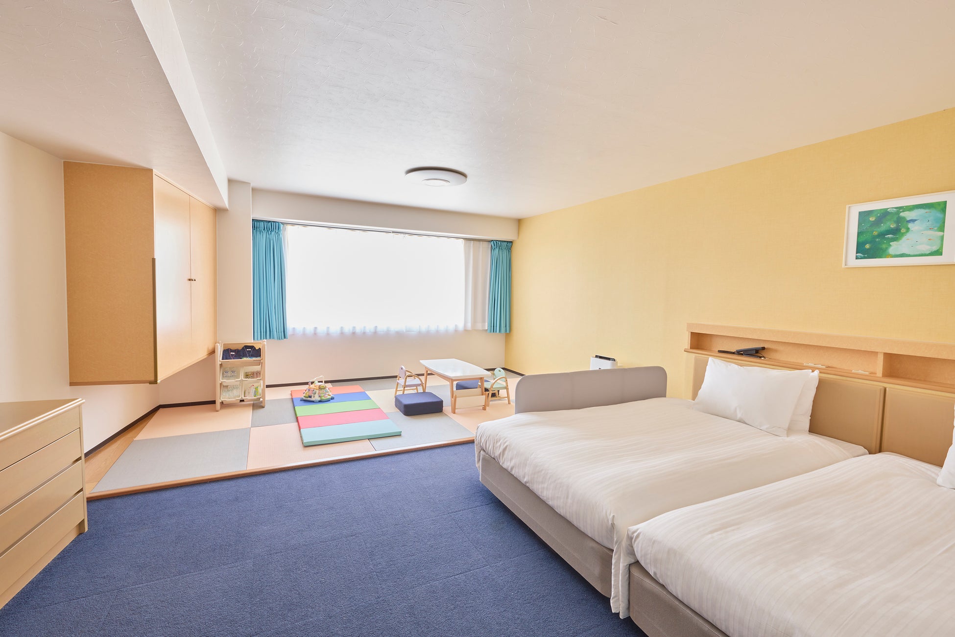 ゆとりあるスーペリアツインで、ベッドは添い寝しやすいようにぴったりと並べた、お子さま連れに人気のハリウッドタイプ。ベビー&キッズ用品も完備しています。