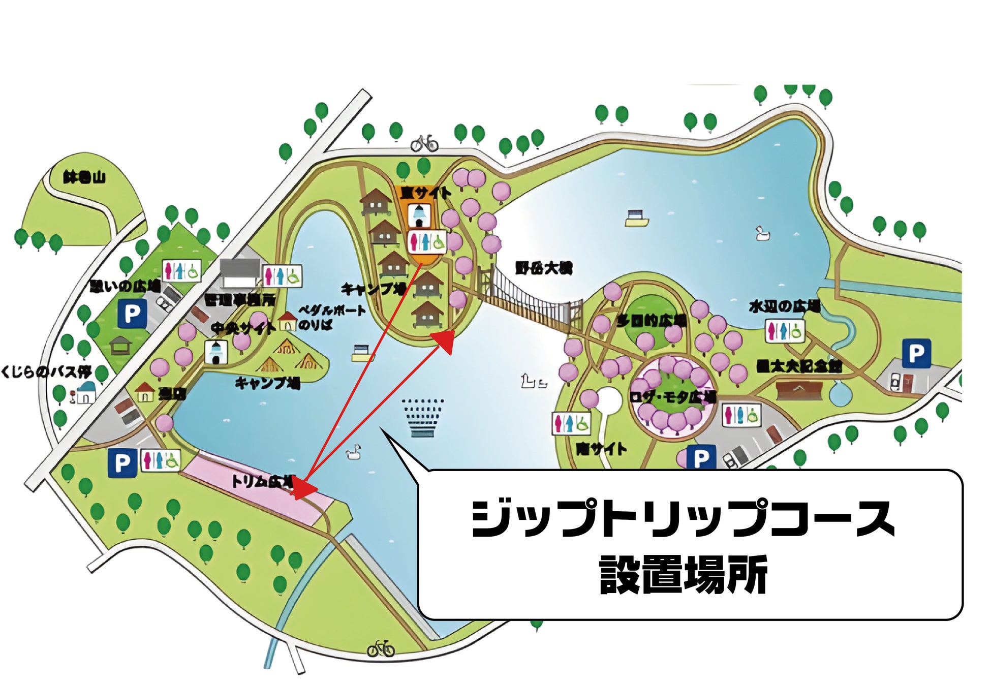 新たに設置される「ジップトリップコース」は、野岳湖の上空を一気に滑空できる、全長約600mのロングジップスライドをメインとしたコースです。湖の上を滑空するこのコースならではの高さと開放感は格別で、風を切って進むスピード感は、まるで空を飛んでいるかのような感覚を味わえます。また、アドベンチャーコースやキャノピーコースと組み合わせることで、森遊びをより一層満喫できる点も魅力です。