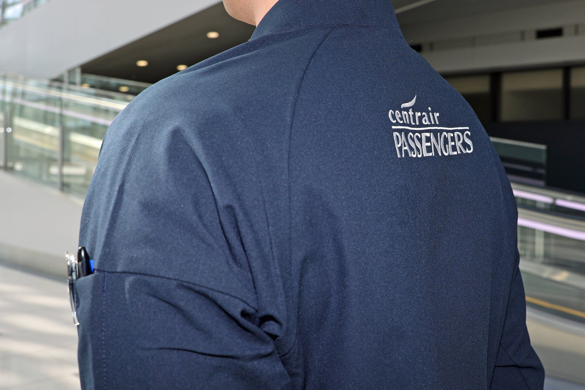 信頼感と親しみのあるミッドネイビーを基調とし、セントレアのロゴ等にも用いられている「セントレアブルー」をアクセントラインに使用。