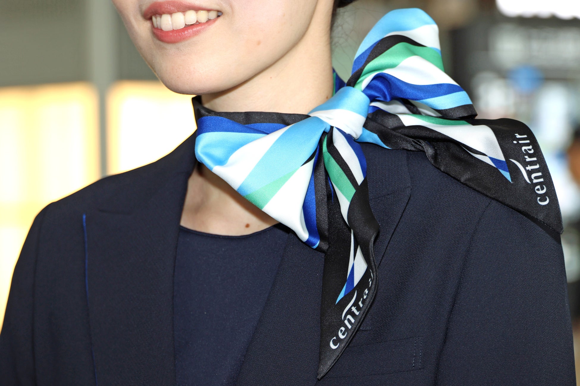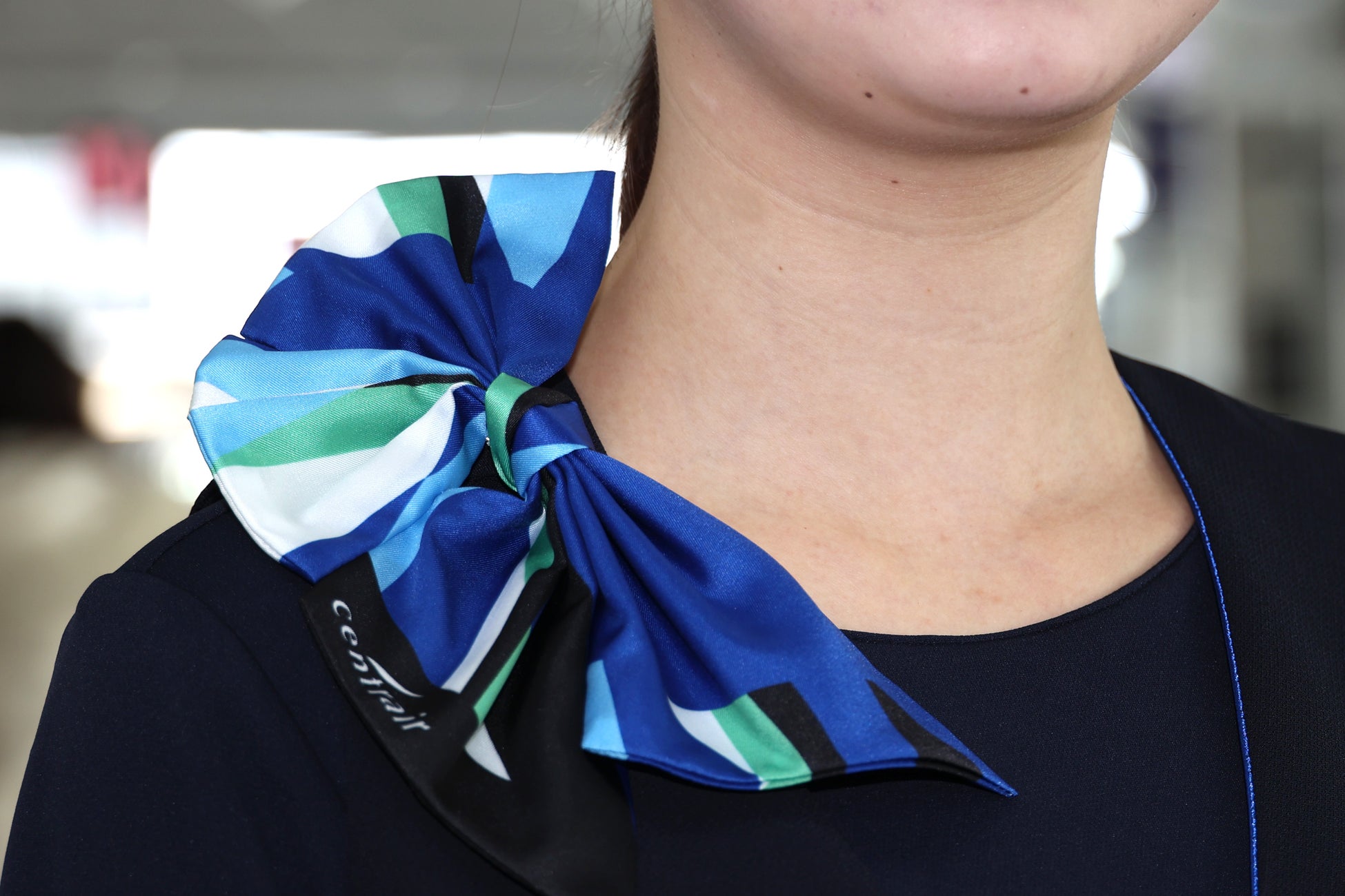コーポレートカラーのセントレアブルーを基調に、無地と女性用スカーフとリンクしたウェーブ柄の2種類。