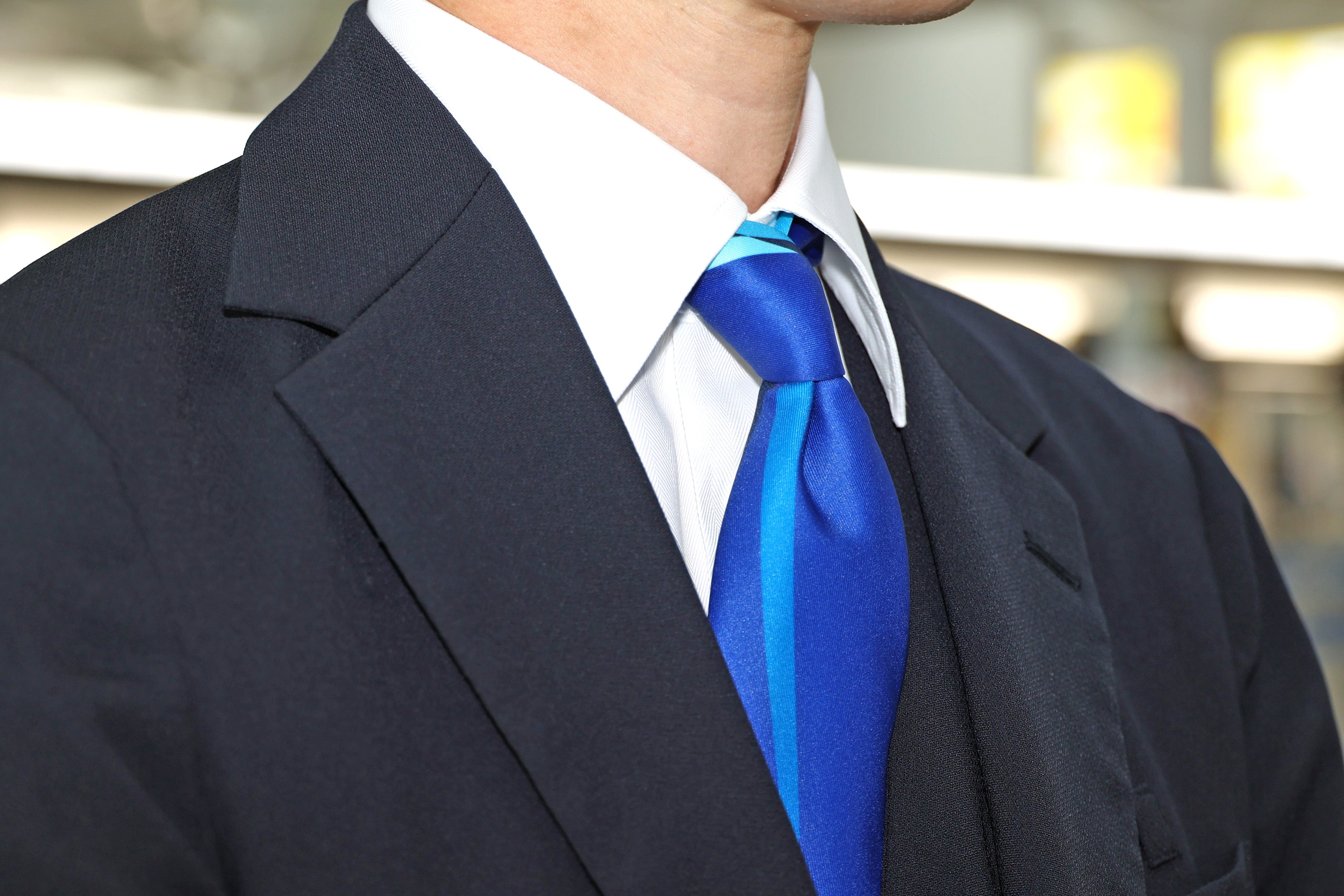 ブルーベース(案内・ラウンジ業務)・グレーベース(販売・サービス業務)のウェーブ柄を用い、首元に巻くタイプとジャケット・ジレに装着できるリボンブローチの華やかさと快適性を両立する2種類。