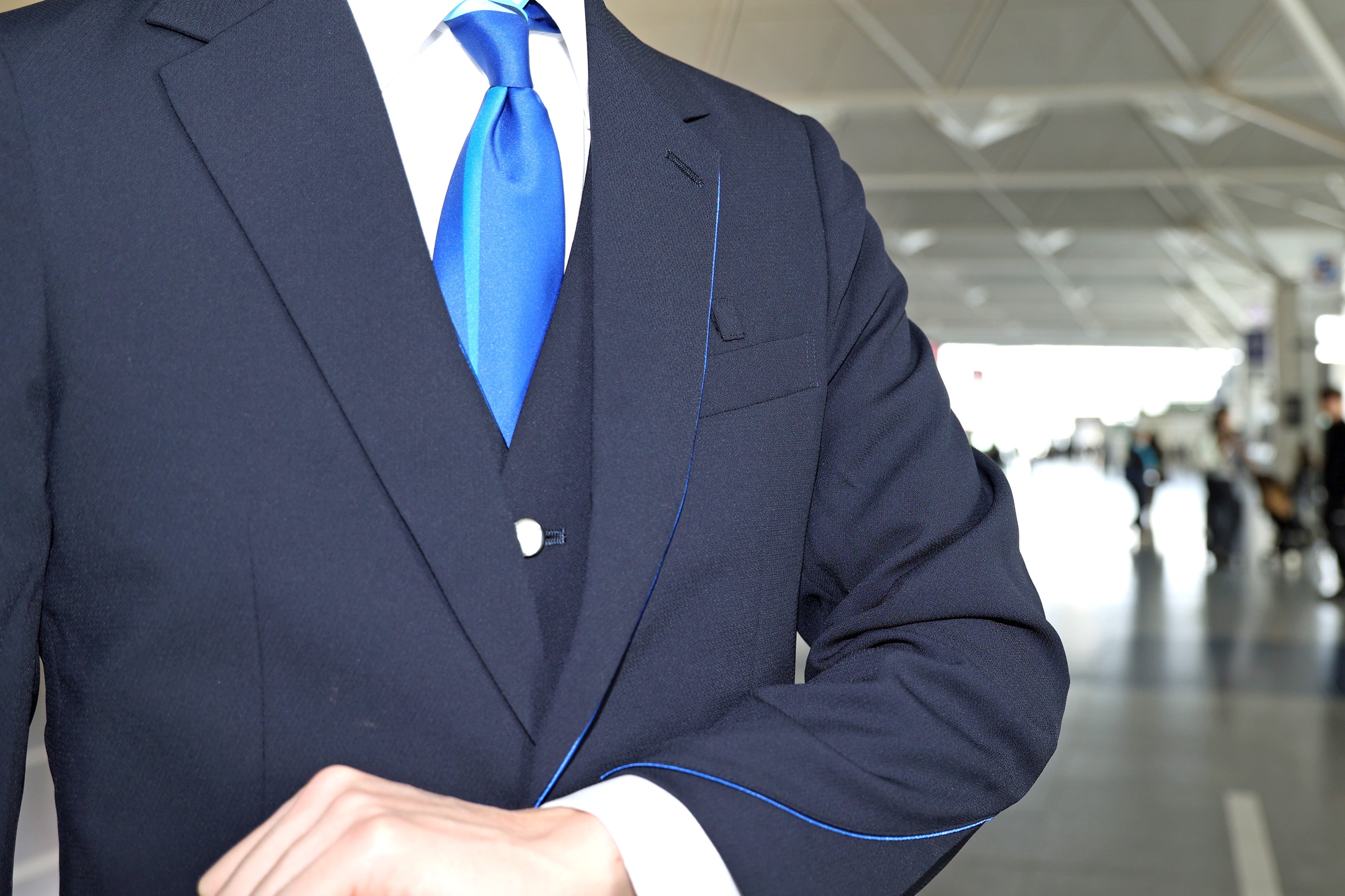 信頼感と親しみのあるミッドネイビーを基調とし、セントレアのロゴ等にも用いられている「セントレアブルー」をアクセントラインに使用。