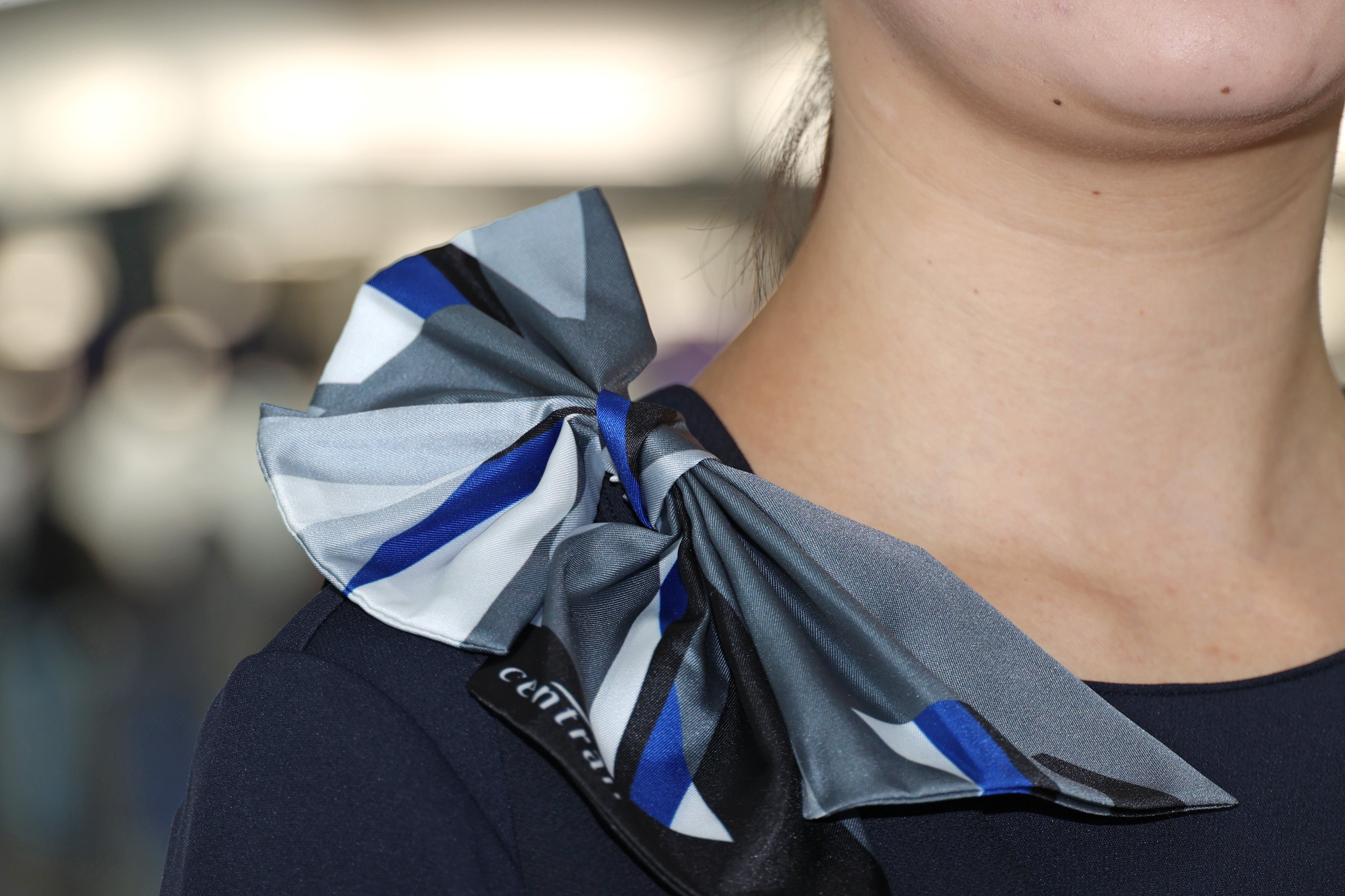 コーポレートカラーのセントレアブルーを基調に、無地と女性用スカーフとリンクしたウェーブ柄の2種類。