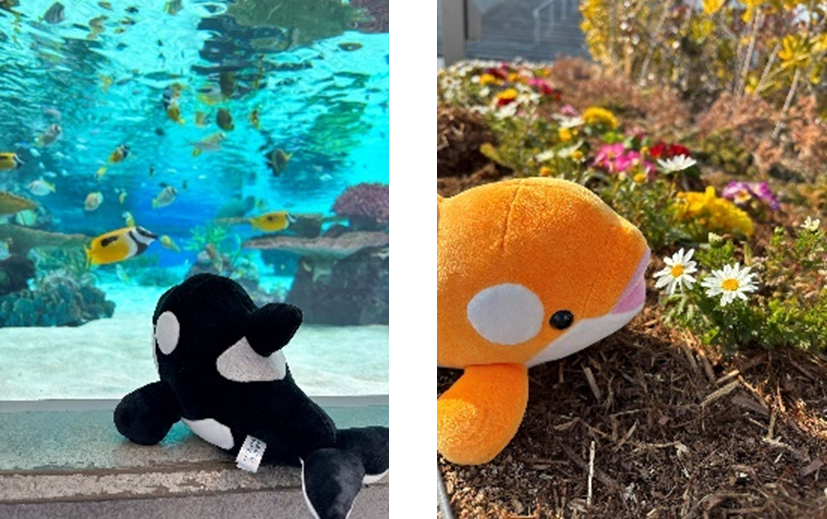 オルカくじ・ドルフィンくじの“推し”カラーのぬいぐるみと一緒に、館内・館外のスポットで写真を撮影してInstagram/X に