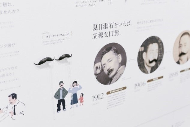 時の流れとともに変化する漱石の口髭に触れてみたり、漱石が1ヶ月に食べたと推測されるジャムの量を目の当たりにして驚いたり、漱石との何気ない会話を楽しんだり。来場者と漱石を直感的に結びつける、学びにとどまらない心躍る体験で、漱石や熊本に対して自然と心が開いていくような展示企画を、親しみやすいクリエイティブデザインで実現しました。