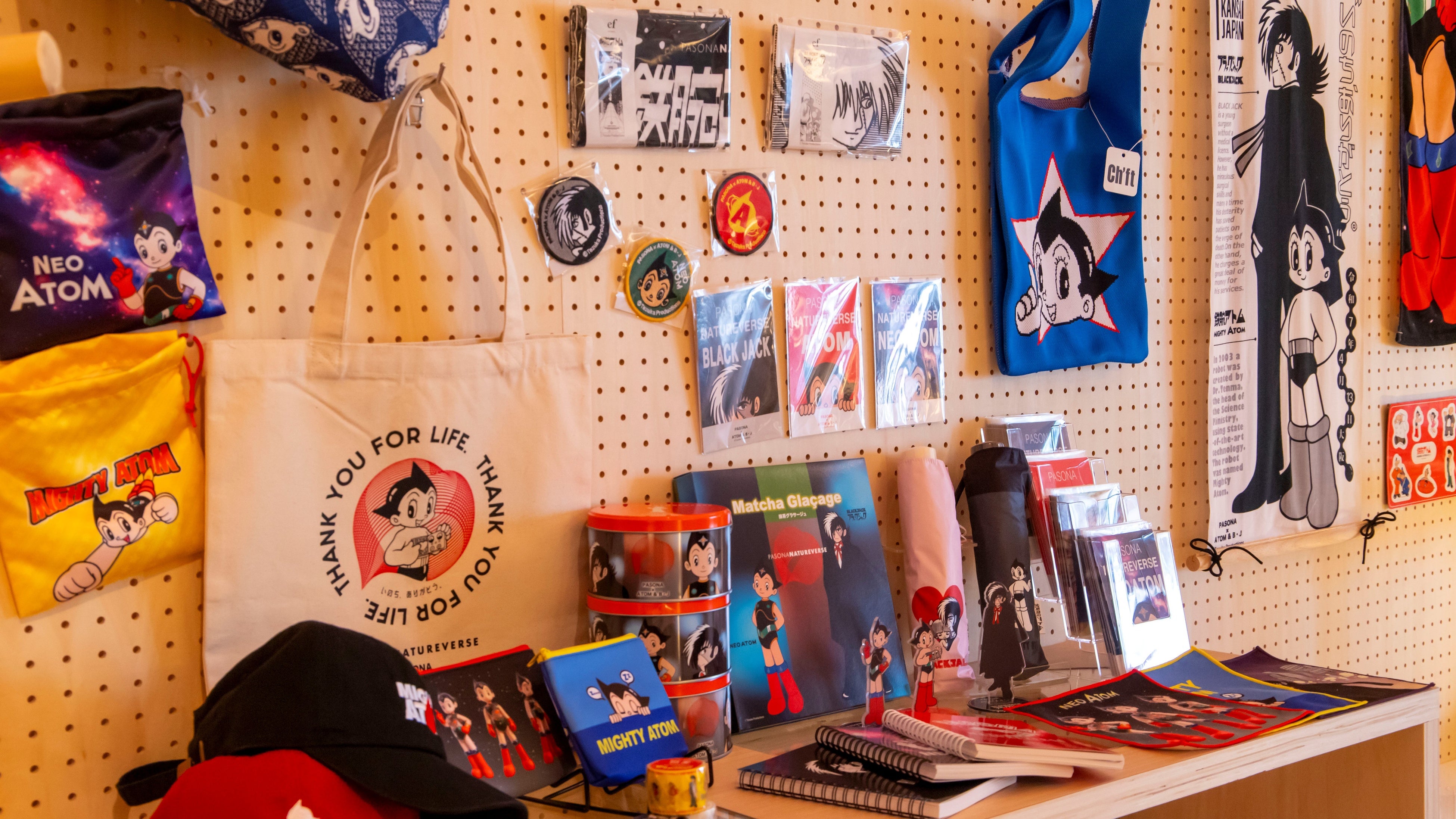 「PASONA NATUREVERSE SHOP」では、パビリオン内で販売をしていたお菓子やお茶などの食品、アクリルスタンドや手ぬぐいといった雑貨類、Tシャツや帽子などの衣類に加え、焼き物などの工芸品約100品を販売いたします。さらに、鉄腕アトムの生みの親である手塚治虫氏ゆかりの手塚治虫書店グッズも用意し、万博パビリオンでの思い出を多面的に振り返っていただけるラインアップを取り揃えています。