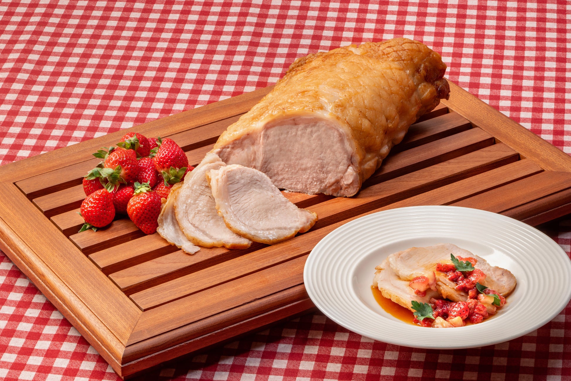 ブッフェの醍醐味といえば、できたての美味しさ。ライブキッチンでは、ジューシーな「ローストポーク」をシェフが目の前でカッティング。苺の酸味を効かせた「ベリーのガストリックソース」がお肉の旨みを一層引き立てます。さらに、温かい「苺のプディング」はふんわりとした口どけと苺の甘酸っぱさが魅力的な一品。ライブ感あふれる演出とともに、できたての味わいをお楽しみください。