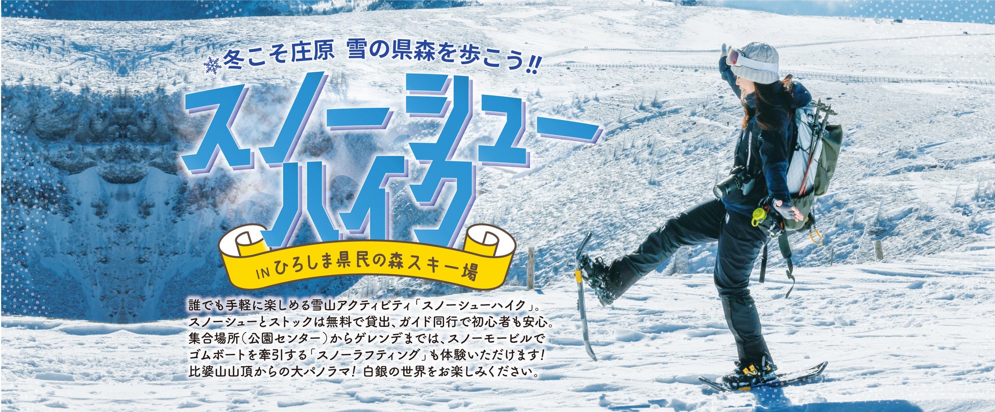 県内屈指の豪雪地帯である西城エリア、高野エリア、そして比婆山連峰を歩くスノーシューハイク。
