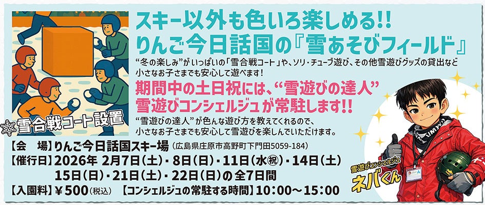 雪遊びフィールド&コンシェルジュが雪遊びをサポート:雪遊びフィールドには、雪を知り尽くした**「雪遊びコンシェルジュ」**が常駐。かまくら作りや雪合戦のコツ、雪国ならではの遊び方を丁寧にレクチャーします。お子様連れでも安心して「本気の雪遊び」に挑戦できる、本キャンペーンの目玉サービスです。