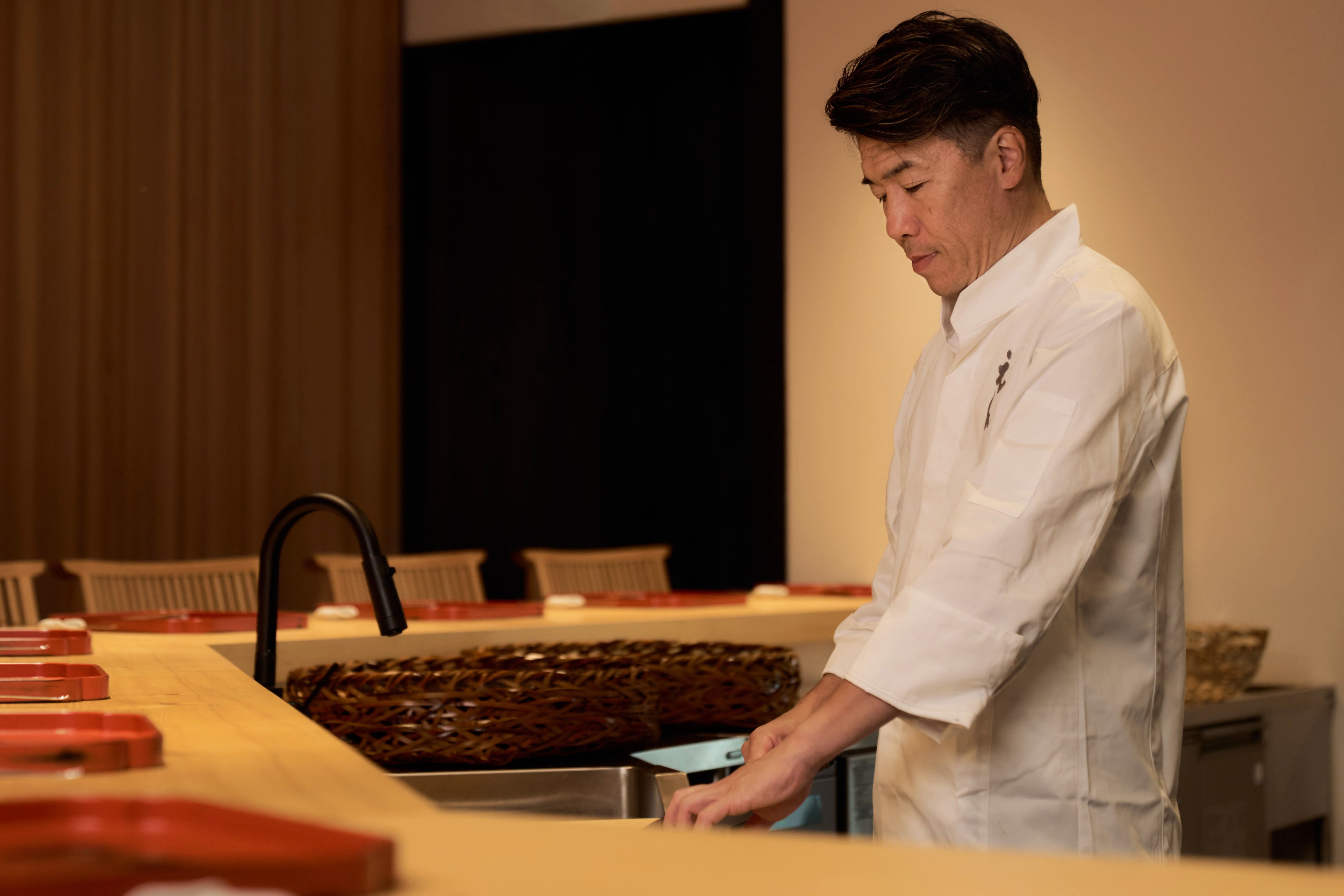 熊本県出身。幼少期、父の何気ない一言をきっかけに料理人を志し、高校卒業後に鮨職人を目指して大阪へ。20代で和食・洋食も経験し、30歳からは大阪の名店「寿司たいすけ」にて9年間修行。18歳から21年にわたる研鑽を経て独立し、現在は「鮨 三心」店主として確かな技で食通を魅了している。