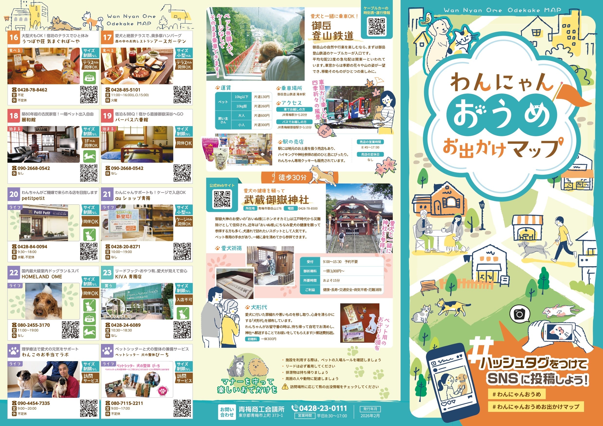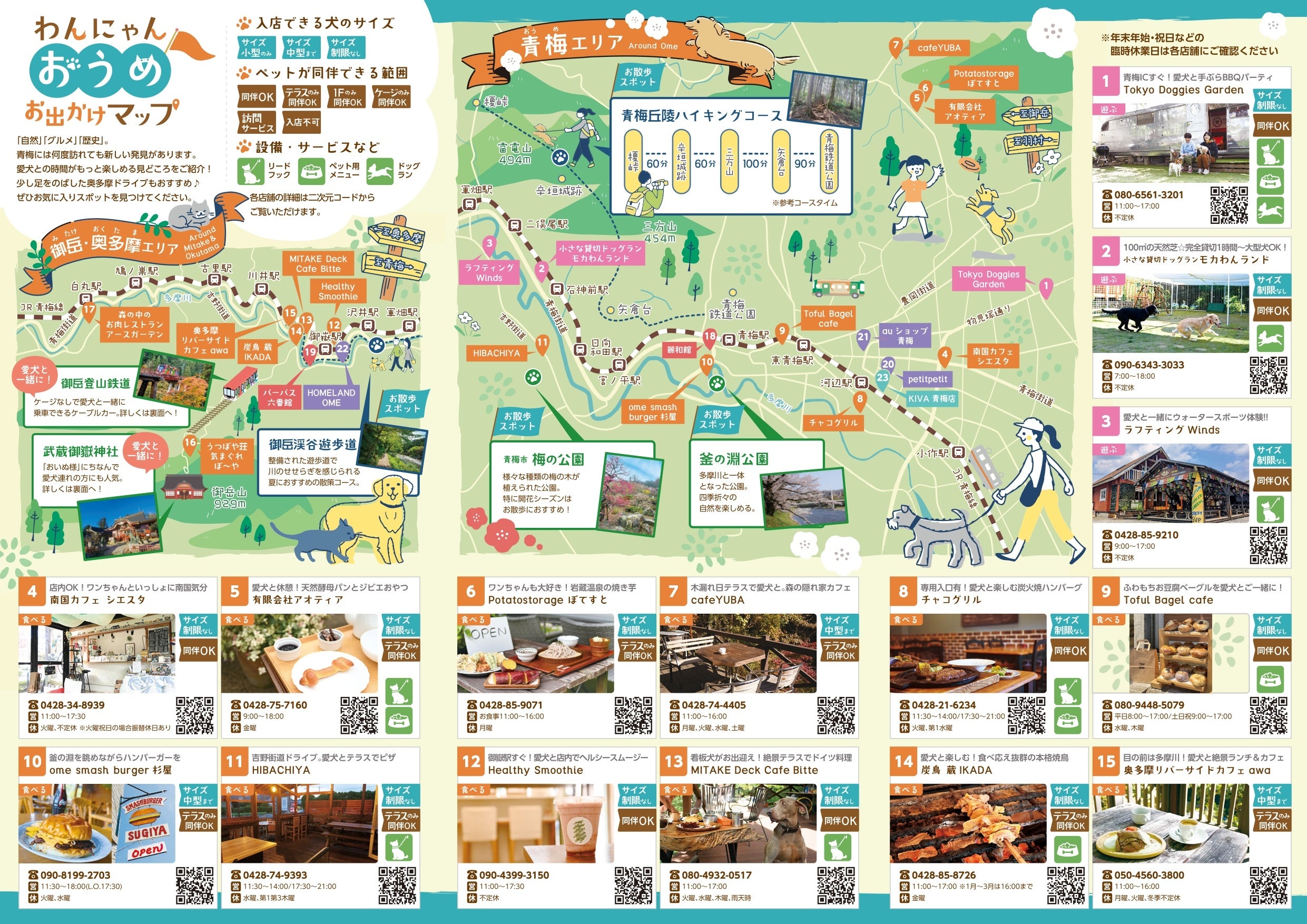 【青梅初】愛犬と青梅に遊びに行こう!ペットと楽しめるお店をまとめたペットツーリズムマップ「わんにゃん おうめお出かけマップ」発行