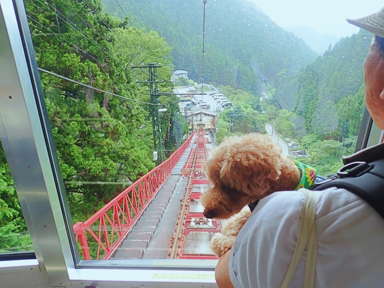 御岳登山鉄道ケーブルカー。休日は犬連れでにぎわう御岳山。こうした来訪者の市内回遊を促進する。