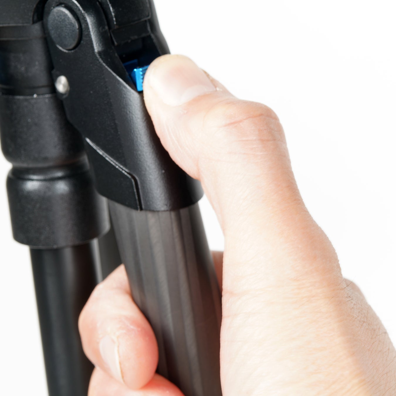 脚パイプは22mm径カーボン4段の軽量タイプで、脚の伸縮ロックにはナット式を採用。軽くて楽にフィールドで持ち歩きできます。