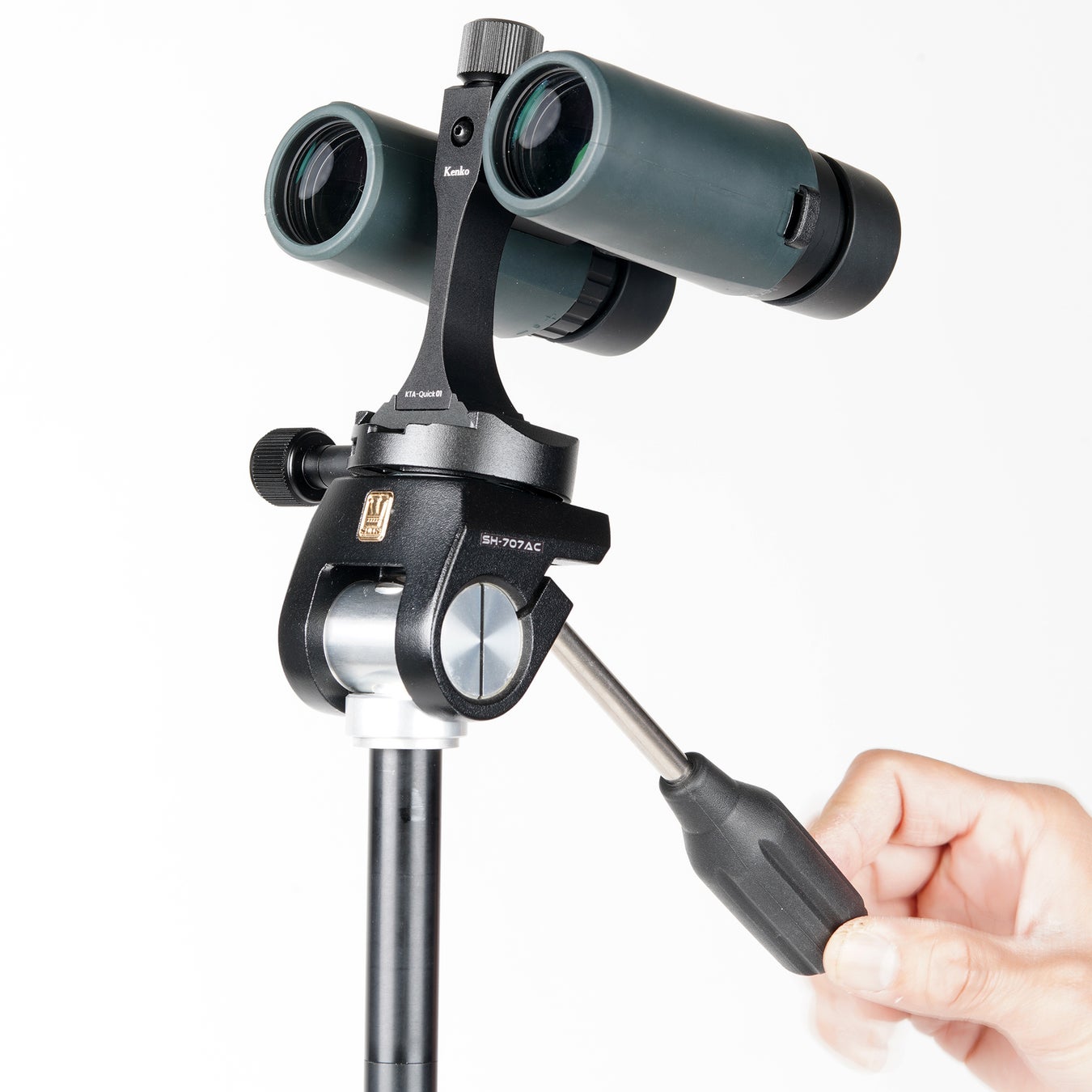 三脚アダプターを取り付けた双眼鏡や、フィールドスコープ(スポッティングスコープ)での観察に対応します。