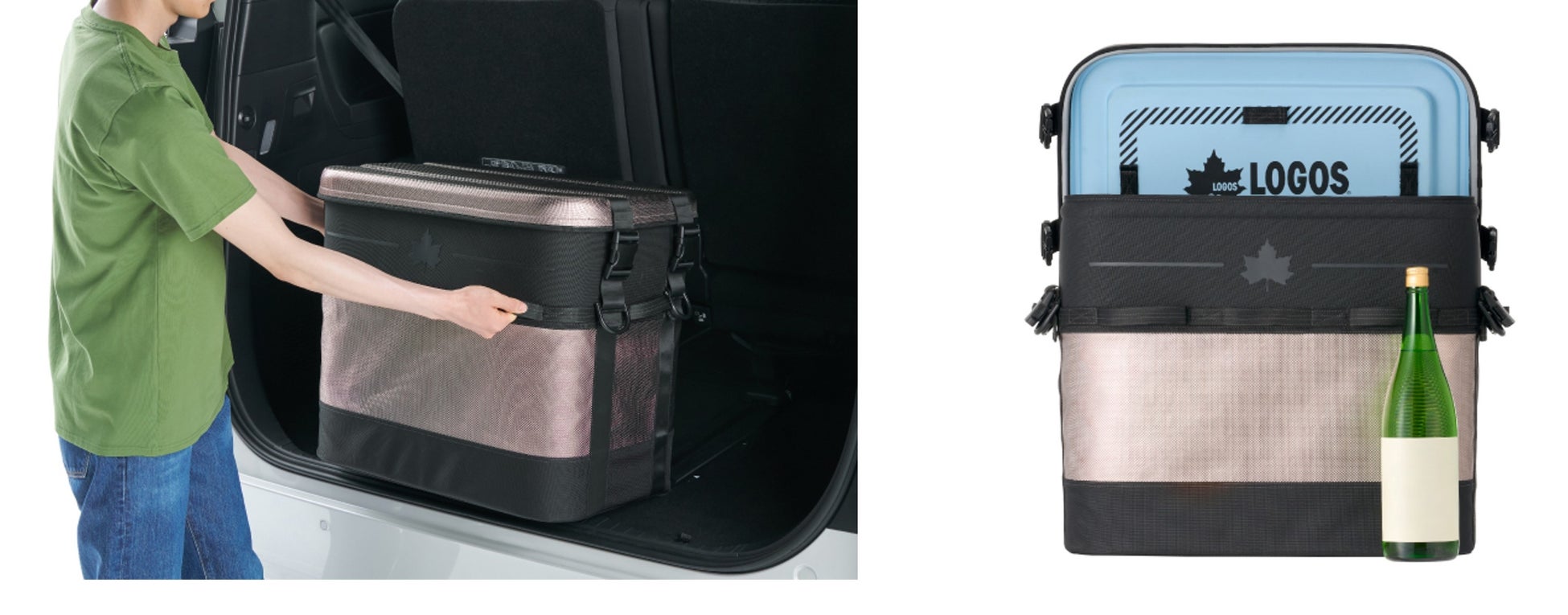 形状は、縦型のトールシルエットを採用することで冷気が下に溜まりやすい構造を活かし、効率よく冷たさをキープして高い保冷効果を発揮。また、底面積を抑え、車載時も幅を取ることなく省スペース収納が可能。さらに、ソフトとハードの長所を兼ね備えたセミハードシェルにより、大型ながら重量は5kgと軽量で、持ち運びもスムーズ。瓶などの割れ物も安心して持ち運びできる。