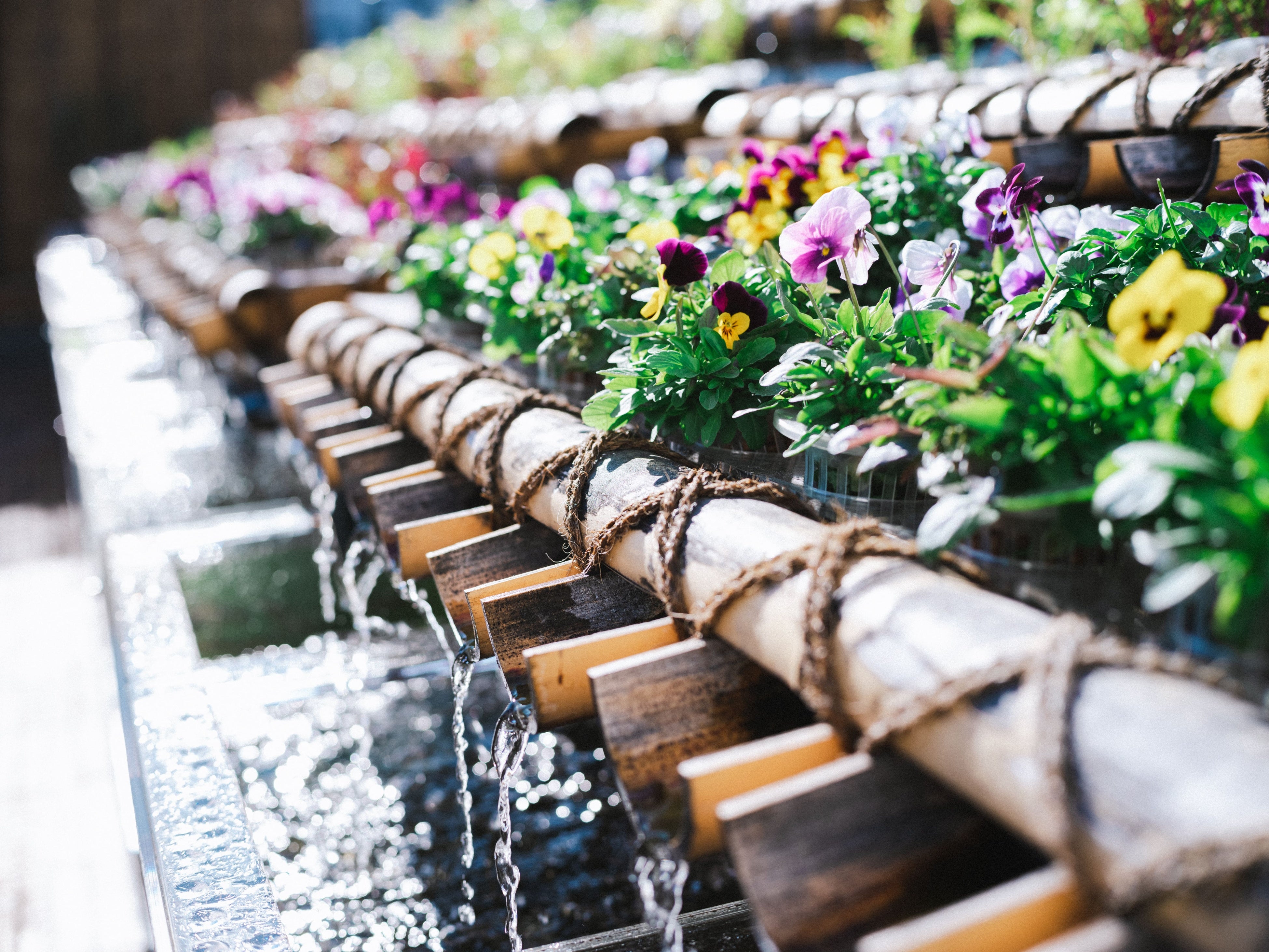 MIMUREにはTSUBAKIが手掛ける植物のしつらえが点在します。真鶴半島で採掘した直径5mの岩の上に、日本の山々の植物が育っていく象徴的なしつらえを、フロア中央高さ約6m、圧巻の吹き抜け空間に設けます。天井から雨の演出を施し、自然の凝縮された美しさを表現します。また、直径約2mの屋久杉の土埋木を用いたモニュメント、小川のような水流と植物のしつらえがベンチと融合するオリジナルの家具を配置するなど、季節の移ろいや自然本来の姿を身近に感じられる表現を凝らし、都心の暮らしの中で、日本の美意識を培います。