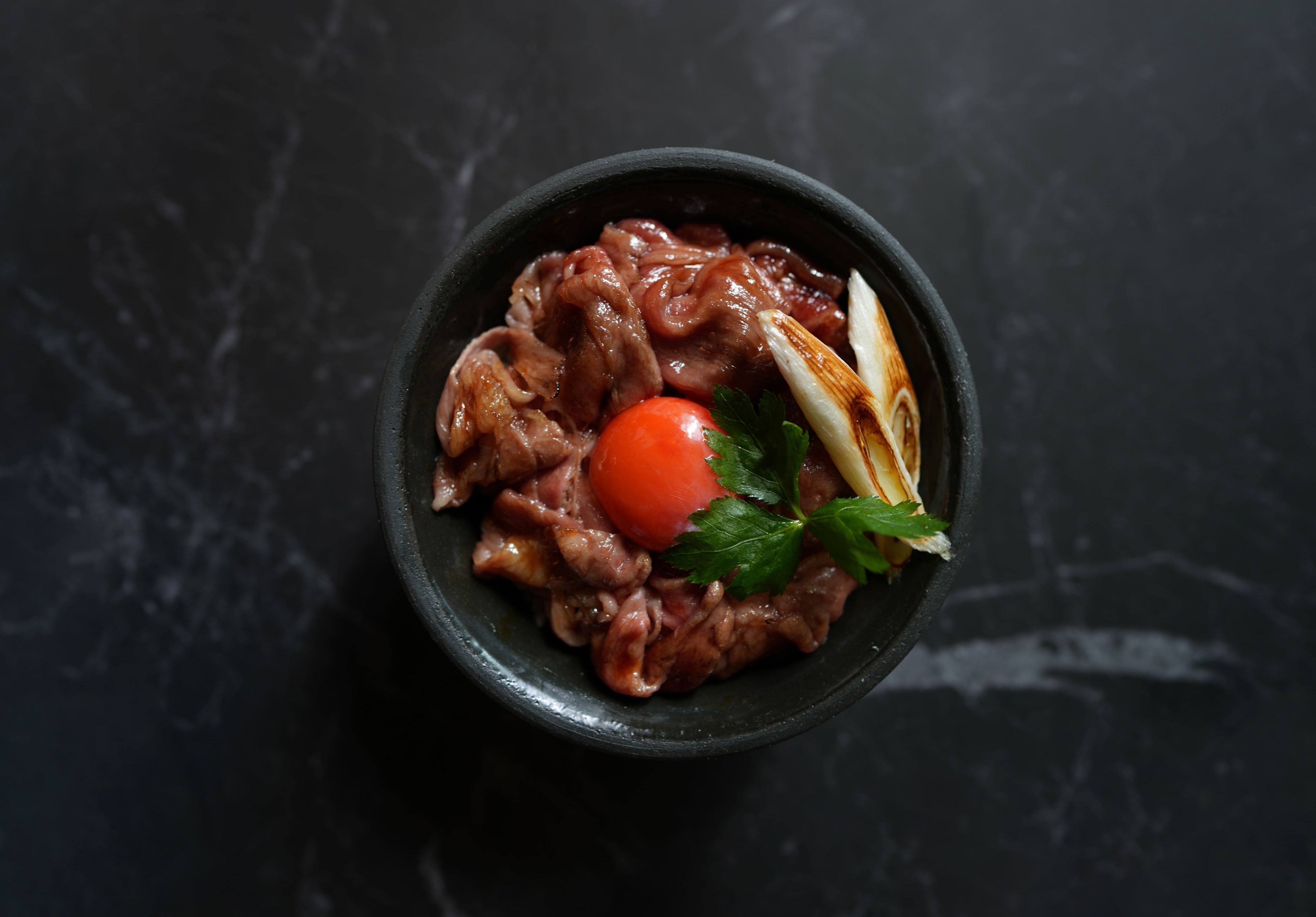 大理石を用いた全周50m、約60人が一度に座れる圧巻のバーカウンターを構える「牛丼㐂㐂屋」。ここで提供されるのは世界中から注目を集める日本を代表する食材の一つである、”和牛”を使った、至高の牛丼です。常陸牛や神戸牛といった全国各地から厳選したA5ランクの和牛が贅沢に使用されます。フロアの中央に位置する、360°開かれた美しい厨房では、羽釜で炊き上げたご飯に職人が目の前で牛丼を仕上げる様子をご覧いただけ、一杯が出来上がる過程も五感でお楽しみいただけます。