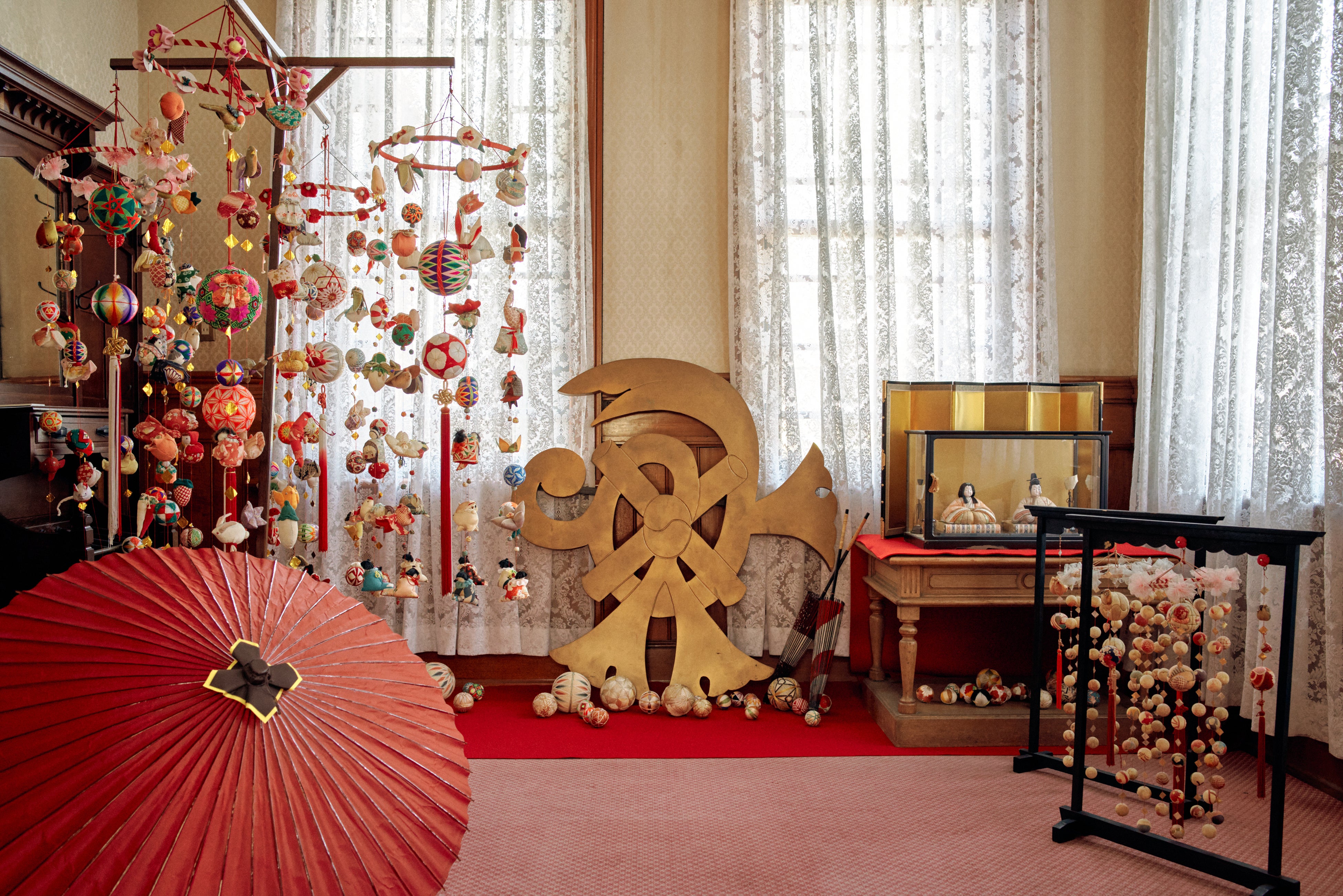 柳川では、古くから子供の初節句にその健やかな成長と幸せを願い、ひな壇とともに色とりどりの「さげもん」を飾り、盛大に祝う風習があります。「さげもん」とは、鶴やうさぎ、ひよこ、海老など、縁起の良いモチーフの布細工と、鮮やかな糸で巻き上げた柳川の伝統工芸「柳川まり」を組み合わせた柳川独自の節句飾りです。一つひとつの飾りに家族の想いが込められています。