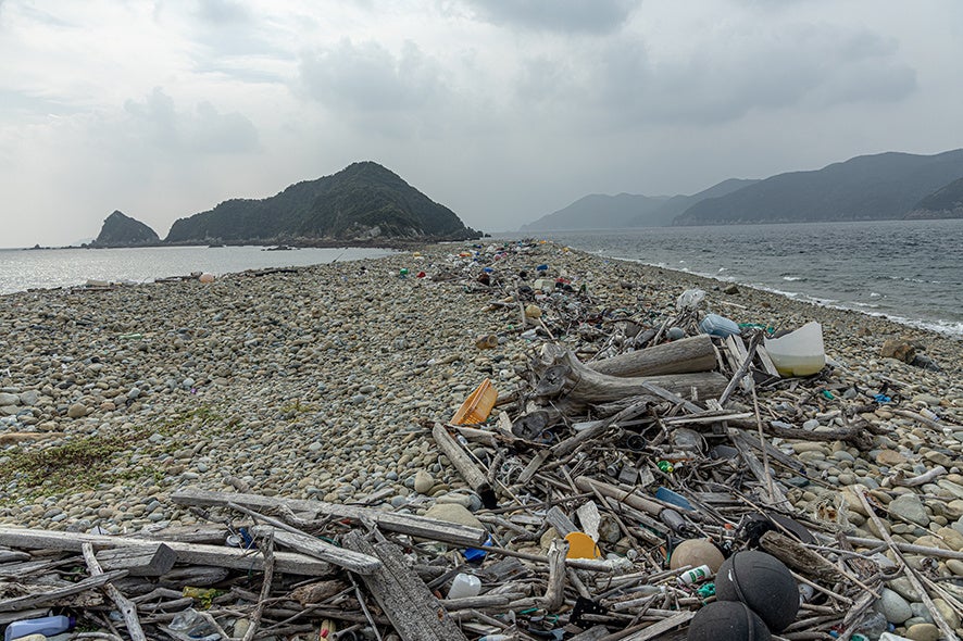 トンボロ(陸繋砂州〈りくけいさす〉)と海洋ゴミ 写真:宮脇慎太郎