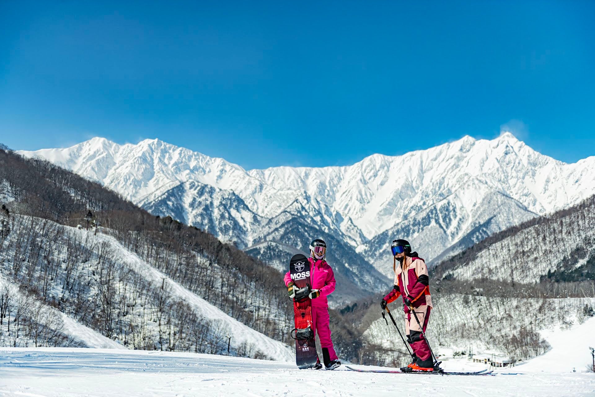 3,000m級の北アルプスを背景に、広大なスケールと豊富な降雪量が魅力。横幅1,200mに及ぶ大緩斜面はファミリーやビギナーに最適。山頂まで行ける長さ4,000mのゴンドラリフトで約5kmのロングクルージングを楽しめます。