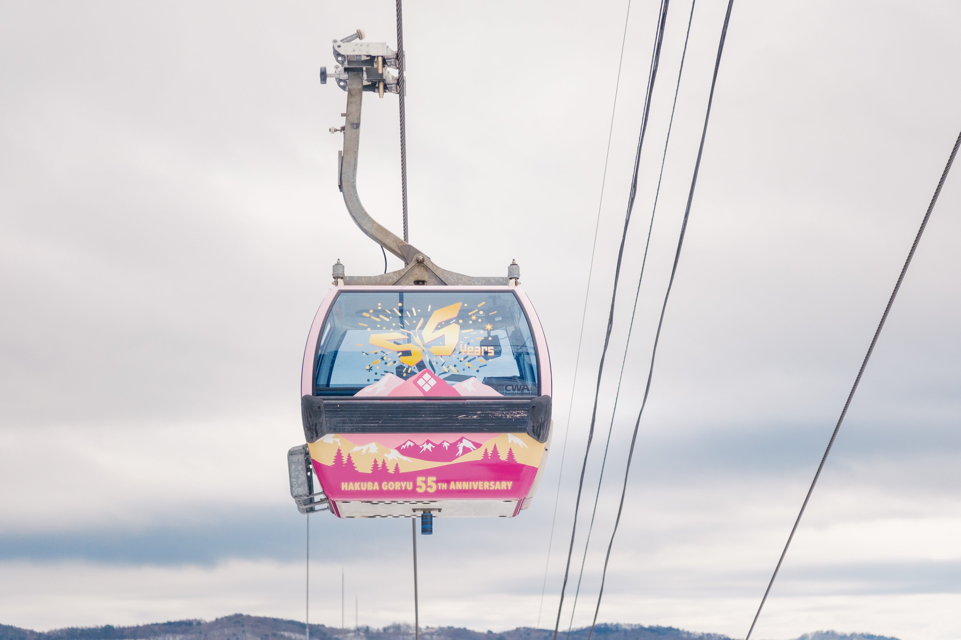 創業55周年を記念して、82台ある、五竜ゴンドラ「テレキャビン」の中1台に特別なラッピングゴンドラが登場!ゴンドラには、秘密のサービスもご用意。