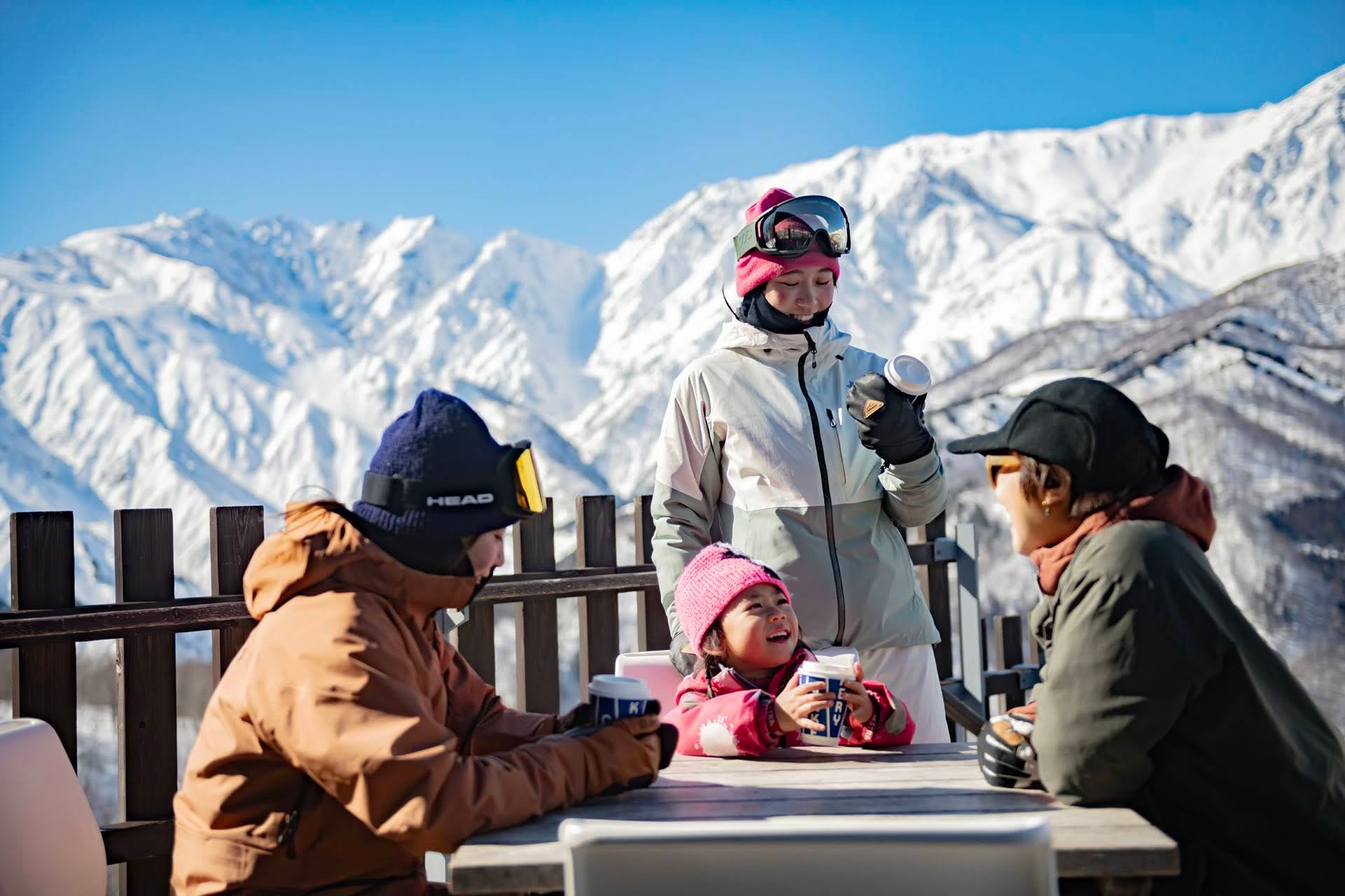 白馬八方尾根の雄大な北アルプスの絶景を目の前に望むことができる絶景スポット。北尾根高原エリアでは雪原の中のこたつで暖まるこたつカフェや、うさぎ平OAKLEY TERRACEではDJイベントなど様々なイベントを開催中。