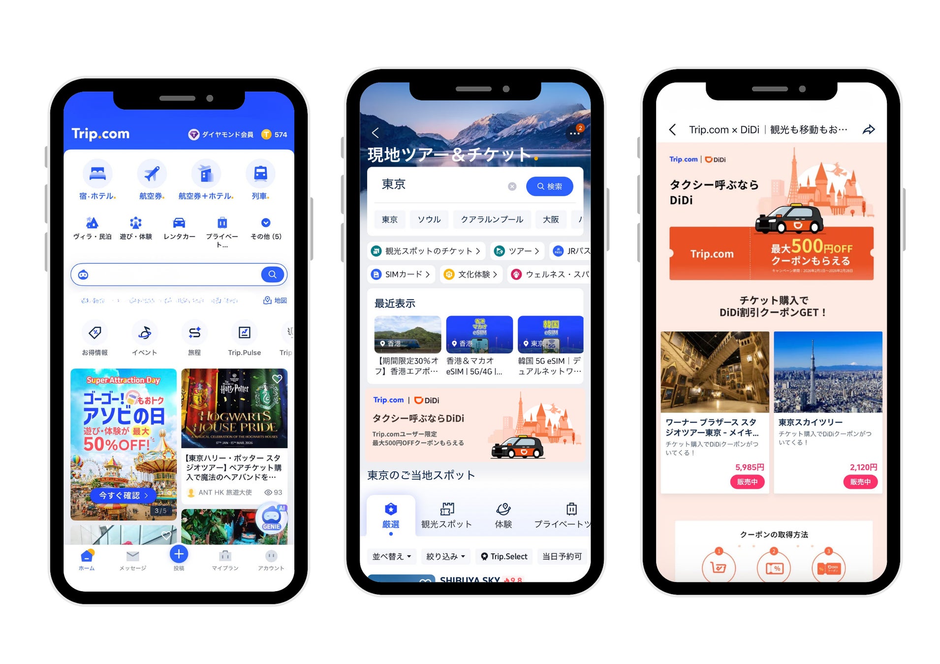 グローバルオンライン旅行サービスプロバイダーのTrip.comは、配車アプリ「DiDi(ディディ)」との共同キャンペーンとして、「東京スカイツリー」および「ワーナー ブラザース スタジオツアー東京 ― メイキング・オブ・ハリー・ポッター」の入場チケットと、DiDiの割引クーポンを組み合わせた東京限定の期間限定プランを、2026年2月12日(木)から2月28日(土)まで販売いたします。