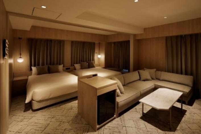「都市を遊ぶには、ゆとりがいる。」をコンセプトに、日本の平均的な宿泊特化型ホテルの広さ15~20㎡に対して、全室30㎡以上・バス・トイレ別のセパレート仕様を採用し、快適で落ち着いた滞在空間を提供しています。さらに、ホテルでも自宅にいるようにくつろいでいただくため、リビングと寝室の境界を意識し、仕切りを設けた客室(一部)をご用意しています。