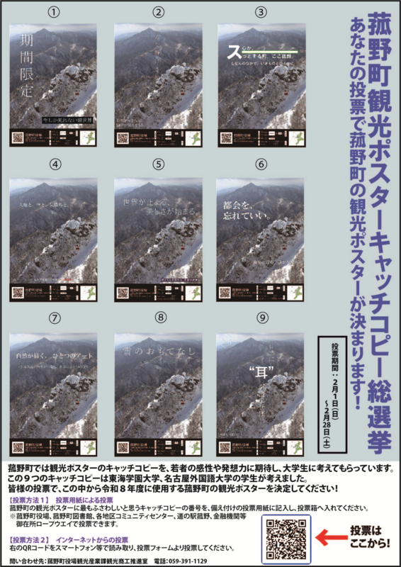 菰野町では、令和8年度に使用する観光PRポスターのキャッチコピーを決定する「菰野町観光ポスターキャッチコピー総選挙」を開催しています。