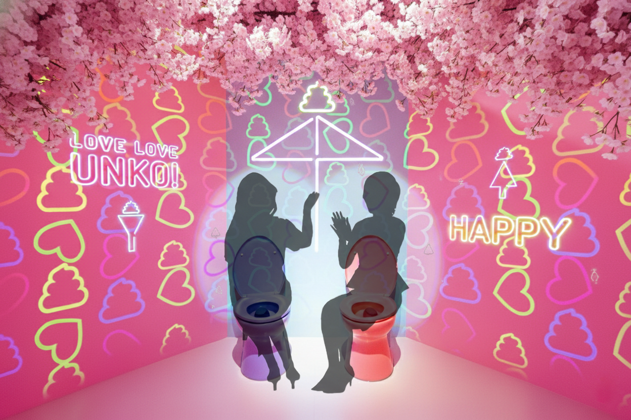 カラフルな便器に座って撮影できる「愛のうんこルーム」も桜一色の装いに。いつも以上に華やかな“映えスポット”となっています。スタッフが撮影をお手伝いしますので、新生活で出会ったお友達やご家族との記念撮影にも最適です。
